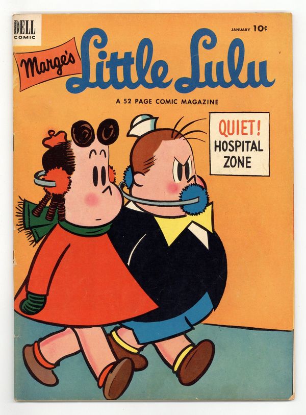 Published Jan 1953 by Dell/Gold Key.$16.00The Fortuneteller; Lulu decides to make money by dressing as a fortune teller and telling fortunes. The Case of the Egg in the Shoe; Tubby solves the case of how an egg got into Lulu's pop's shoe. Water Girl; Lulu says she can find water near the clubhouse. That Witch Hazel Again; Lulu tells Alvin about how Hazel turned the poor little girl into a parrot. The Chemist; Tubby has a dream in which he turns Gloria into a dog. Two-page text story, Lulus Diry ("Diary"). 52 pages, full color. Cover price $0.10.