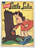 Published May 1953 by Dell/Gold Key.$20.00The Fright Racket; The Fellers tell Lulu she can join the club if she goes into Carson's haunted house at night. Sawdust Trail; Lulu keeps rescuing the cat Tubby and Willy are trying to lose. The Comedian; Tubby wants to hit Lulu in the face with a sour custard pie. The Outing; Lulu wakes Tubby up after she is locked out of her house in the middle of the night. Cuffed Customer; Lulu finds out why Tubby has a pair of handcuffs in his shoeshine box. Luluson Crusoe; Lulu tells Alvin about a little girl who was cast up on a desert island. The Manhunter; Tubby is looking all over town for a robber named Barry Burgle. Two-page text story, Lulus Diry ("Diary"). 52 pages, full color. Cover price $0.10.