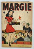 Stories by Morris Weiss and unknown. Art by Morris Weiss and unknown. America's glamour girl, Margie, stars in four tales by Morris Weiss: "Margie's Dizzy Drive!"; "The Niece Who Wasn't!"; "Her Peculiar Pop!"; and "The Story of the Sad Ad!" Also in this issue: Ruffy Ropes in "Getting Gabby's Goat!" by Morris Weiss; 2-page text story "Homer and the Three Bears"; and Rusty in "Who Sent for an Inventor?" 48 pages, full color. Cover price $0.10.