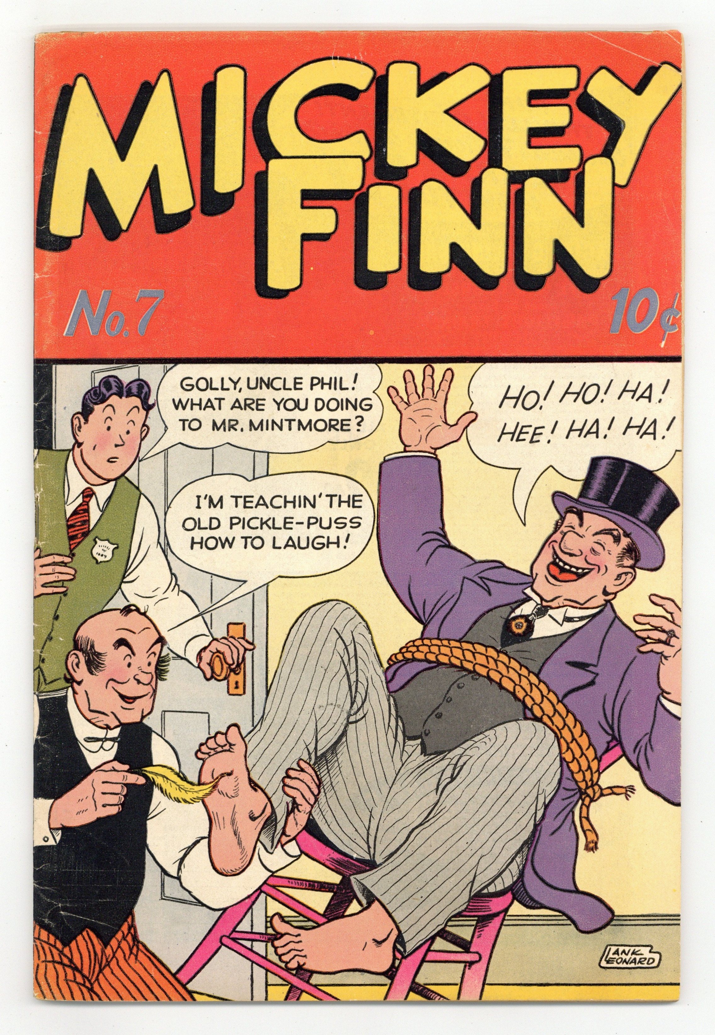 Stories and art by Lank Leonard. Cover by Lank Leonard. Reprints of the Mickey Finn newspaper strip by Lank Leonard. A city cop, Mickey had adventures that were a mixture of drama and comedy; his ne'er-do-well Uncle Phil often served as the focus of the comedy. Mickey and Tom find the kidnappers after a nationwide hunt and fight to free their hostage. 48 pages, Full Color. Cover price $0.10.
