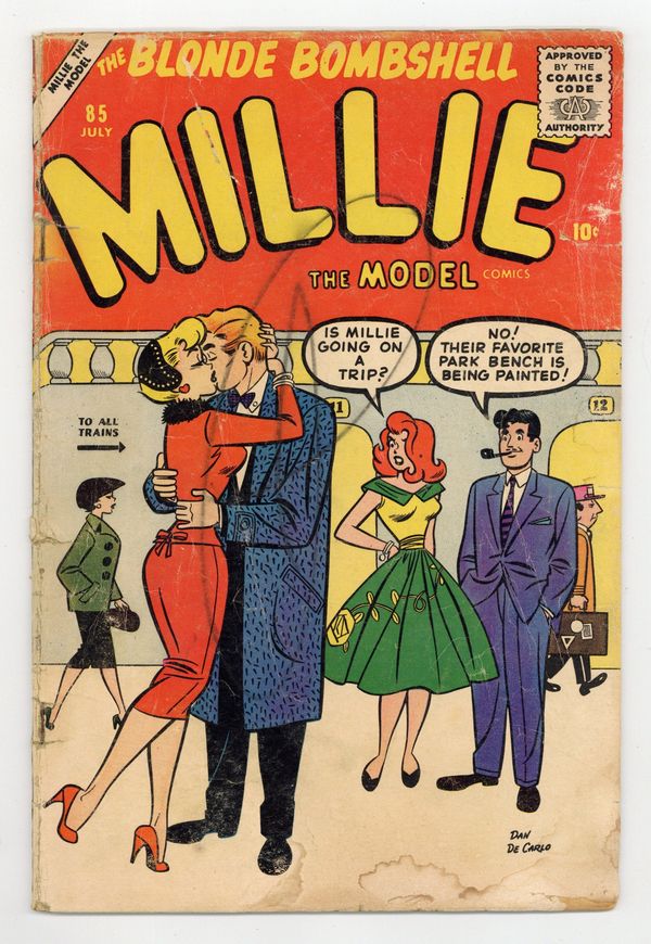 Cover art by Dan De Carlo. Untitled stories featuring Millie the Model, My Girl Pearl, and Nellie the Nurse. Millie Fashion Pages with fashions submitted by readers. Chili's Fashion Page. Pearl's Fashion Page. When Millie Was a Li'l Monster starring Millie the Model. Stories by Stan Lee, art by Dan De Carlo. To Beat the Band text story. 36 pgs. $0.10. Cover price $0.10.