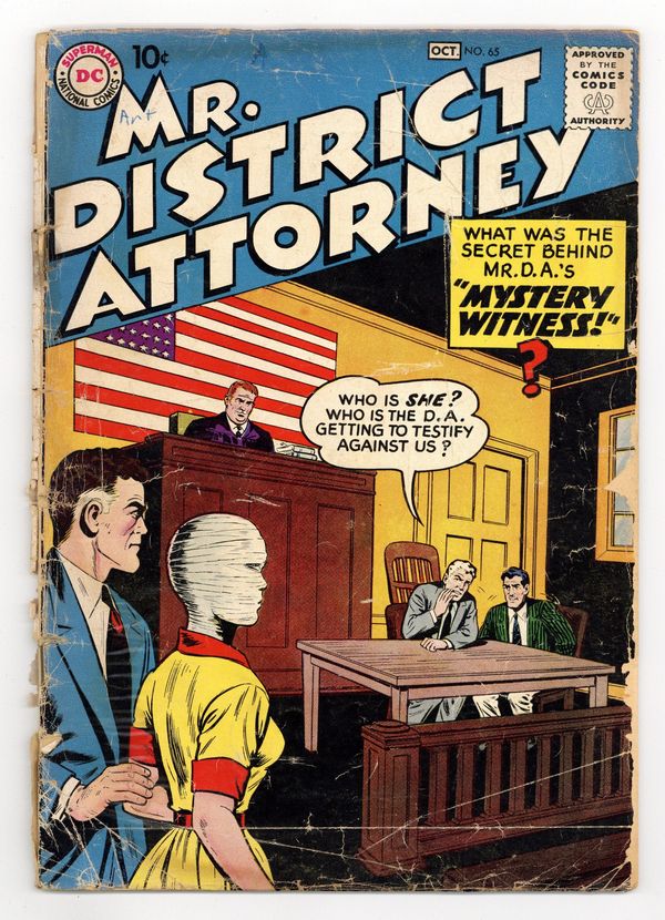 Cover by Sheldon Moldoff. Stories by Henry Boltinoff and unknown. Art by Sheldon Moldoff and Henry Boltinoff. Mr. District Attorney in: "World-Wide Dragnet" with art by Sheldon Moldoff; "The Mystery Witness!" with art by Moldoff; and "Mr. D.A. -- Enemy Agent!" with art by Moldoff. Also in this issue: Warden Willis 1-pager by Henry Boltinoff; Casey the Cop half-pager by Boltinoff; Strange Laws 1-pager by Boltinoff; and The D.A. File 1-page text article. 32 pages, full color. Cover price $0.10.