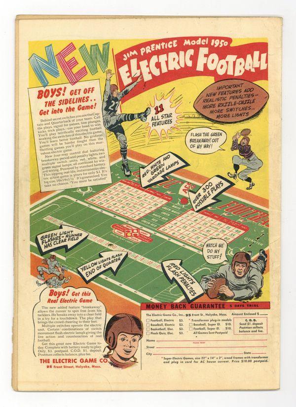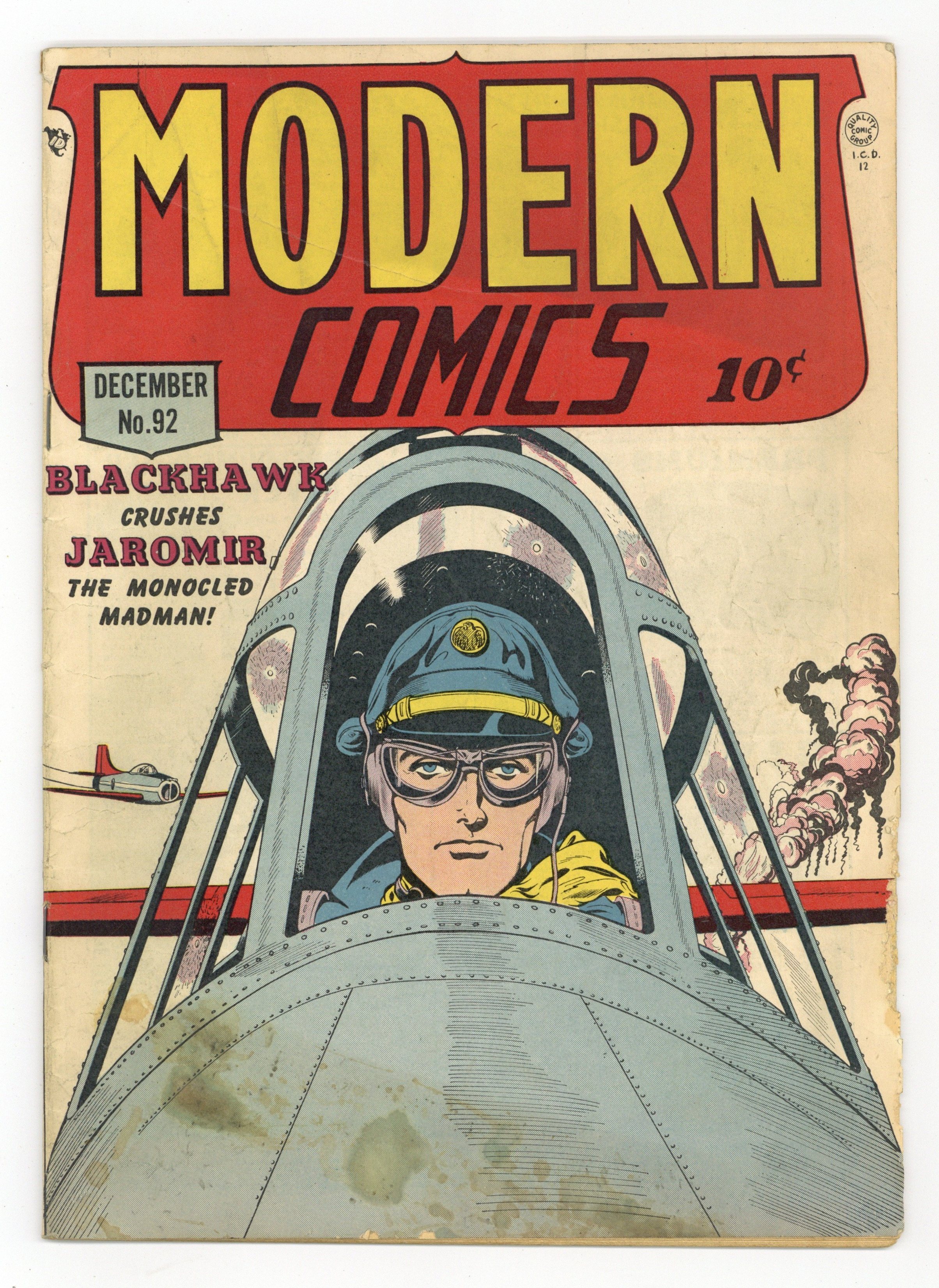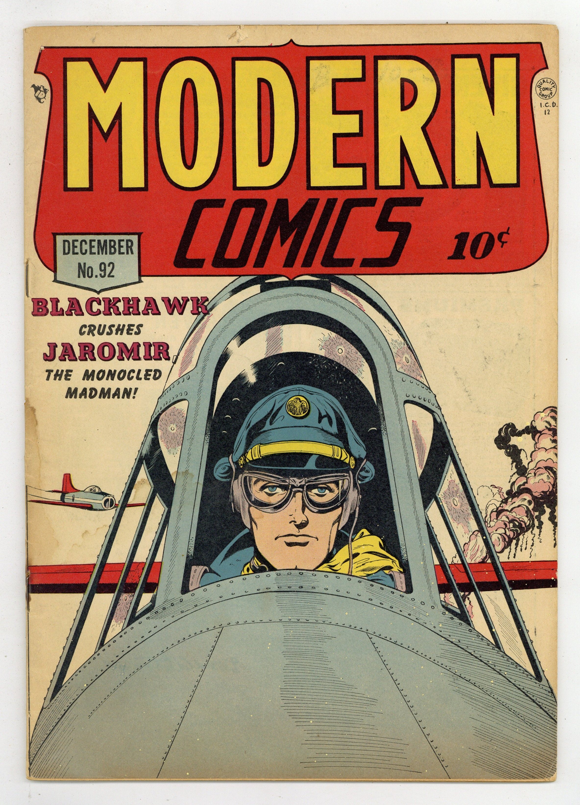 Cover pencils by Reed Crandall, inks by Chuck Cuidera. Jaromir the Monocled Madman starring Blackhawk, inks by Cuidera. Untitled stories starring Torchy and Will Bragg. Some Words Fool You starring Ezra. Dark Secret text story starring Blackhawk. 36 pgs. $0.10. Cover price $0.10.