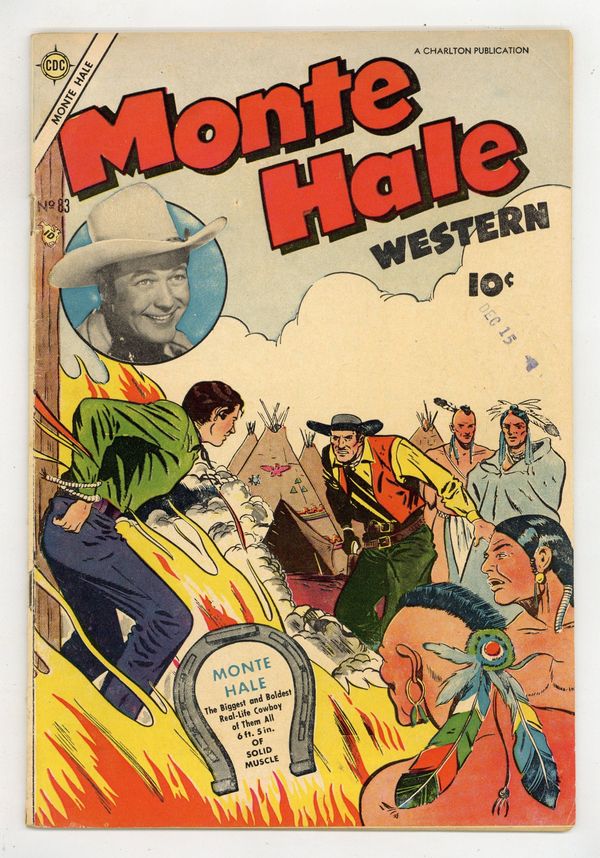 $16.00Cover by Stan Campbell. Stories and art by Edmond Good, Dick Kraus and Leonard Frank. First issue published by Charlton. Movie cowboy Monte Hale wanders the frontier, cleaning up the West one outlaw at a time. Cavalry troops still divided over the end of the US Civil War must put aside their differences when Sioux forces attack border settlements. An animal-cruelty activist doesn't want perennial sidekick Gabby Hayes to put horseshoes on his horse. Monte finally tracks down the swift-fingered gang known as Safe-Crackers Unlimited, but they get the drop on him and capture him. Pony Boy Pedro... Knows His History!; Old Smokey; Two Flags At Dawn; Indian Sign Language; Gabby Hayes and the Unlucky Horseshoes; Imagine That!; Old Slick; Rodeo Gun-Trail; Gray Hawk: Waterfall of Doom; Lucky Day; Safe-Crackers Unlimited; Pinto Pete. 32 pages, Full Color. Cover price $0.10.