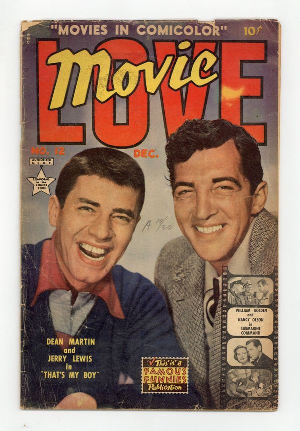 Photo cover of Bill Baker (Dean Martin) and Junior Jackson (Jerry Lewis). Nancy Olson article with photo. "Submarine Command," art by Ed Moore; Adaptation of the 1951 movie; Submarine commander Ken White remembers his wartime years aboard the USS Tiger Shark, a submarine. "Susan Hayward," art by Henry Kiefer; Susan Hayward talks about the filming of David and Bathsheba. Article on Dean Martin and Jerry Lewis. "That's My Boy," art by Harold LeDoux; Adaptation of the 1951 movie; The greatest player in the history of Ridgefield College gets his sickly, nerdy, uncoordinated son on the schools football team. Famous Funnies Patterns ad. 36 pgs., full color. $0.10. Cover price $0.10.