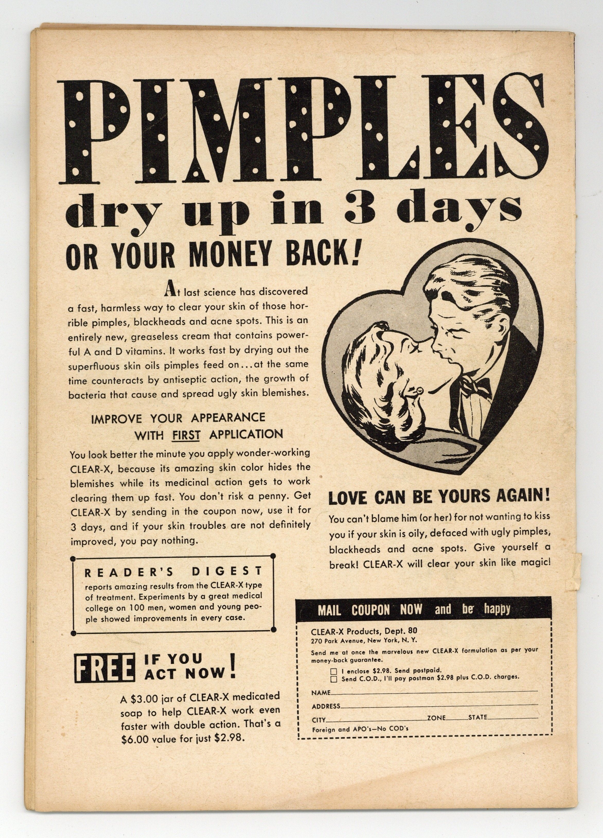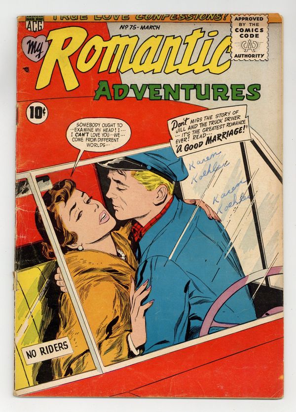 Cover by Ken Bald. Edited by Richard E. Hughes. Stories by Richard Hughes. Art by John Rosenberger and others. Tales of romance from legendary early independent comics publisher ACG. Well-off Jill falls for a working-class truck driver, but her domineering sister disapproves; Nurse Maria falls for handsome patient Arthur, but her no-nonsense employer isnt having it; Advice on being yourself rather than changing to suit a man. A Good Marriage!; Washing Machine Man; The Love She Sought!; Vanity!; Be What He Wants!; Registered Nurse!; What's Wrong with Childhood Sweethearts? 32 pages, Full Color. Cover price $0.10.