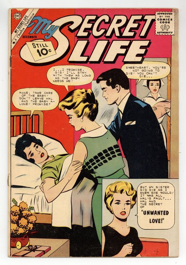 Cover by Joe Sinnott and Vince Colletta. Stories and art by Joe Sinnott, Charles Nicholas, Sal Trapani, Dick Giordano, and Vince Colletta. A whiff of scandal adds spice to tales of heartbreak and romance. Anne's sister dies after making Anne promise to take care of her husband Hal and their baby, in a story featuring art by future Fantastic Four legend Joe Sinnott. Joan reluctantly agrees to go out with her friend's cousin Bobby, but it turns out Bobby has changed greatly in the two years since she last saw him. Carol falls for widower Dean and his young son Bobby, but is she really over her own departed husband, Hal? Honeymoon for Four; The Sun Will Shine; Ugly Duckling; The Magic Chopsticks; Unwanted Love. 32 pages, Full Color. Cover price $0.10.