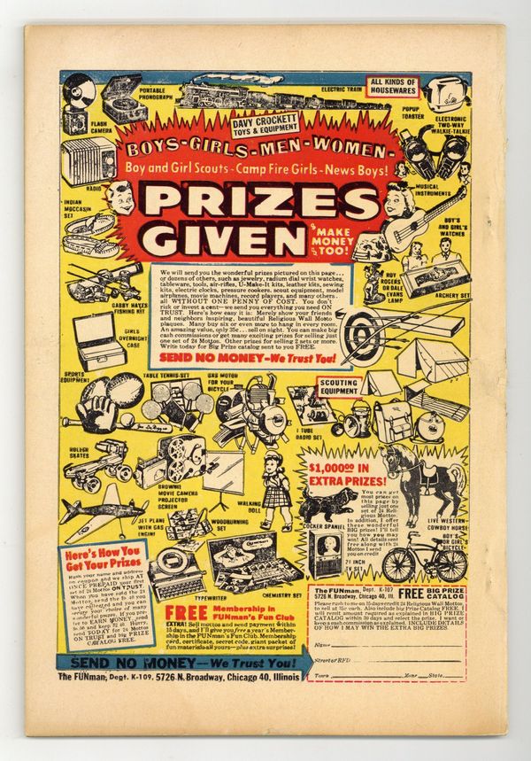 Published Feb 1958 by Charlton Comics Group.$51.00- 1 1/2" spine split near center.