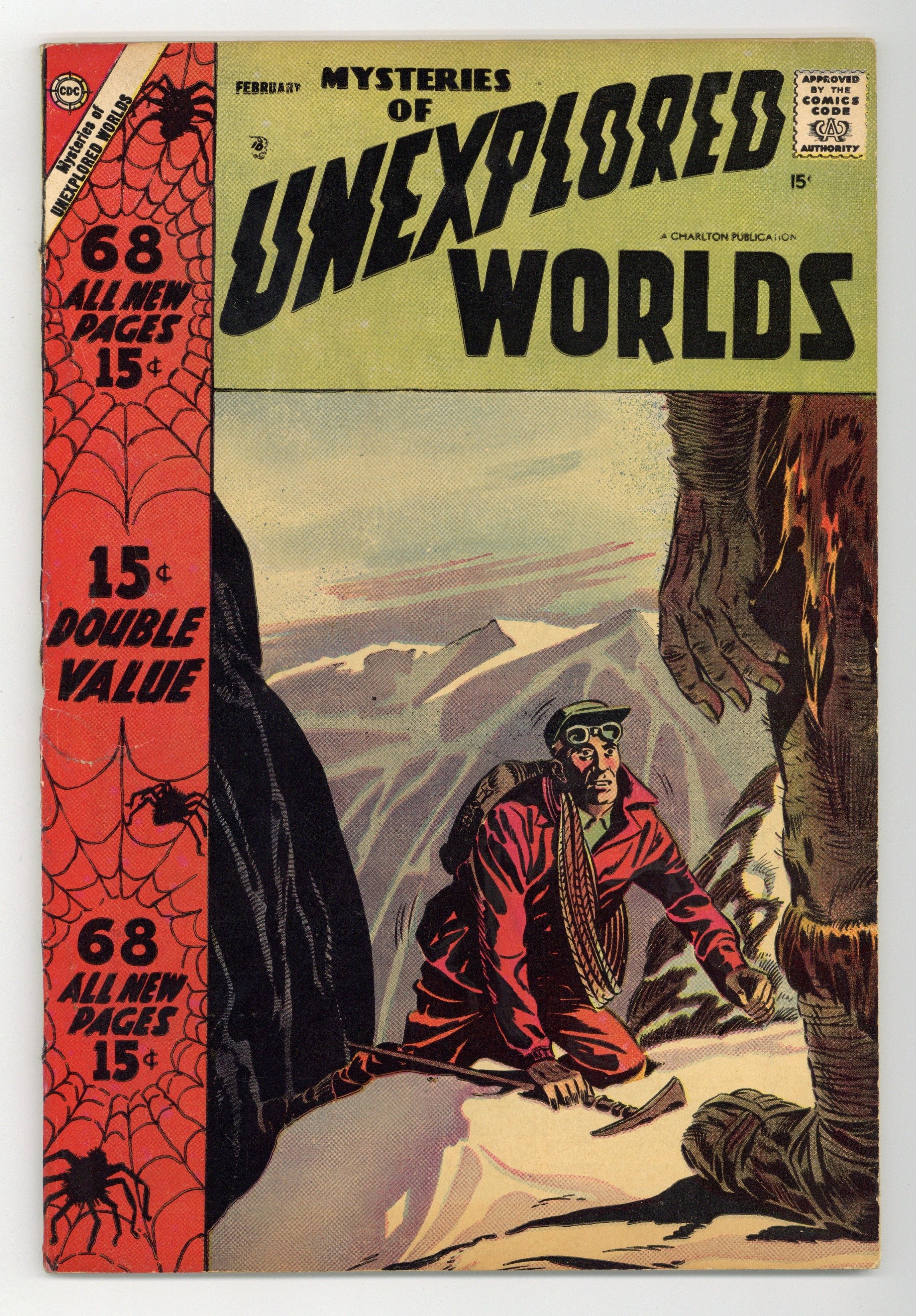 Cover by Steve Ditko. Stories and art by Steve Ditko, Dick Giordano, Bill Molno, Rocco "Rocke" Mastroserio, Sal Trapani, Charles Nicholas, and Vince Alascia. Charlton's popular series features tales of science fiction and fantasy with twist endings. In 1890s Alaska, Dutch has a profitable sideline in long-frozen brontosaurus steaks, in one of several stories in his issue with art by Spider-Man co-creator Steve Ditko. In another Ditko story, a coat is able to teleport its wearers to a parallel universe. The galaxy learns the secret of peaceful Planetoid X. The Angry Things; This Was an Unexplored World; And Life Goes On; The Garden of Time; The Watchers; Freight Car Prisoner; Element X; The Talking Dog; Madman at Large; The Cheapest Steak in Nome; Simba; Second Hand; The King of Planetoid X. 64 pages, Full Color. Cover price $0.15.