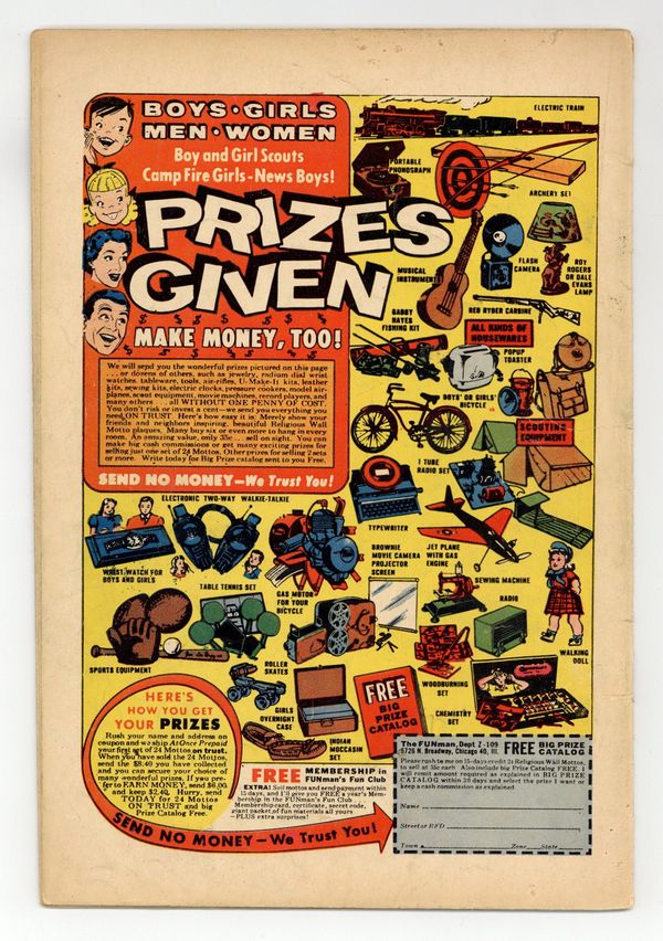 Published Apr 1959 by Charlton Comics Group.$26.50- Cover detached. 3 1/2" Cumulative spine split. 1 1/2" tear on back cover.