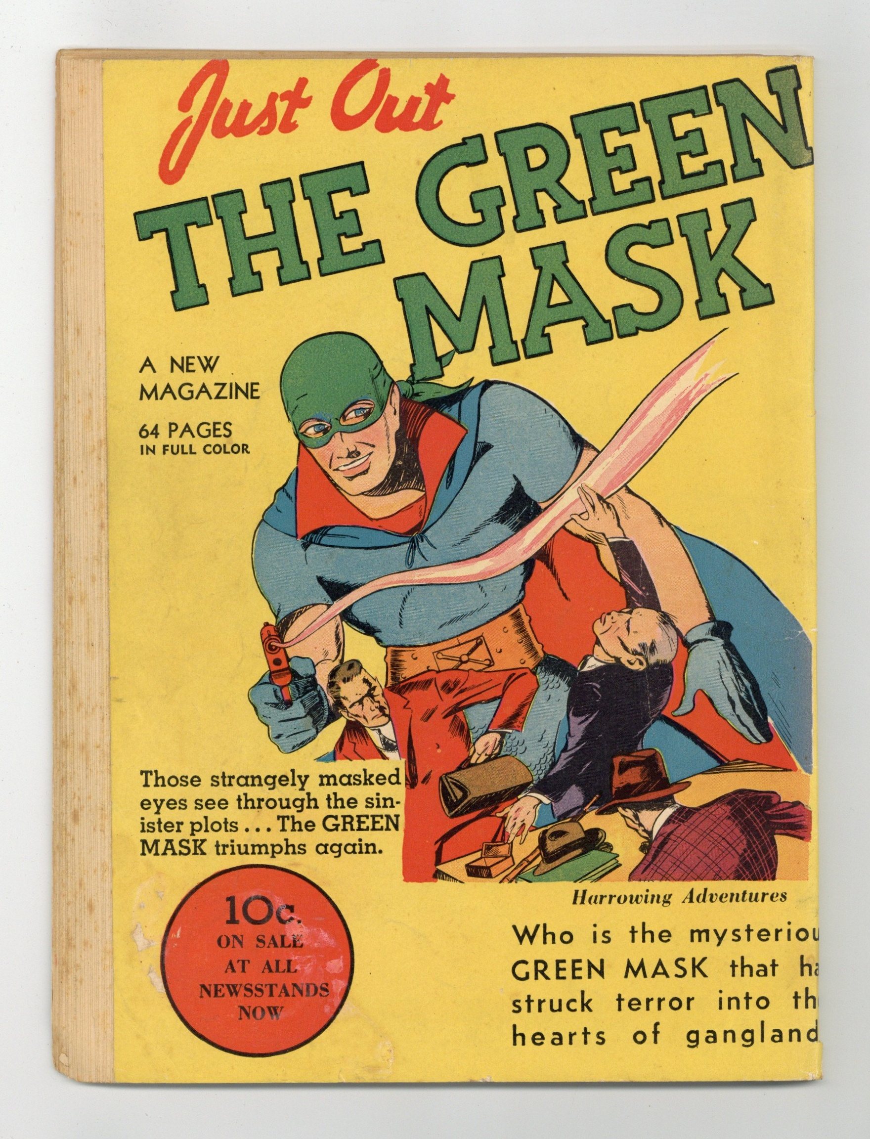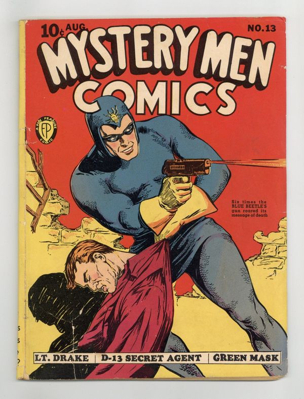 Cover art by Edd Ashe. Untitled story, art by Larry Antonette (as Charles Nicholas); A gang of thieves rob a pawn shop, nearly knocking out Policeman Hannigan, who whistles an SOS, which the Beetle overhears and heads out to capture the crooks. Untitled Wing Turner story, art by Floyd Kelly; The Joe Pennelli Case, Part 1. Untitled story, script and art by Dick Briefer; Rex Dexter vs. Rof and Zard; The destruction of Tarsis. Untitled story; The Green Mask must track down and stop a maniac murderer who is targeting debutants. "The Devil's Vendetta" starring Chen Chang and Hip Sing, art by Munson Paddock (as Cecilia Munson). Untitled story, art by Klaus Nordling (as F. Klaus); Lt. Drake vs. Ivan and other spies. "Death From the Boxing Ring" text story by E. J. Armond. Untitled story, script and art by Bob Powell; D-13 (Richard Anthony) vs. Henrietta Gorin. Untitled story, art by George Tuska; Zanzibar vs. Ching the Pirate. Untitled story, art by Jim Mooney (as Norton Kingsley); The Lynx and Blackie, the Wonder Boy, must battle the Flood Makers Association in order to prevent them from flooding a town and looting the empty homes. 68 pgs., full color. Cover price $0.10.