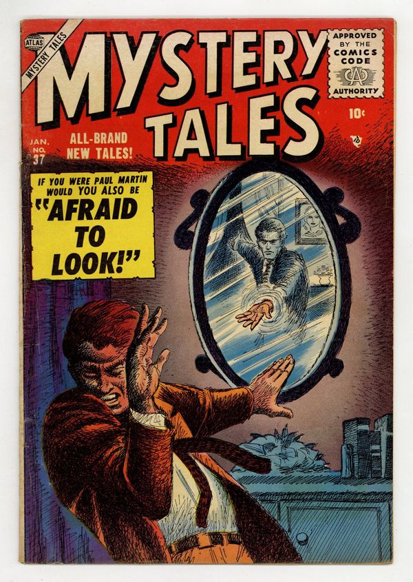 Cover art by Carl Burgos. The Martians!, art by John Romita. Afraid to Look!, art by W. R. Brown. The Man Who Moved, art by Bob Powell. The Puzzle text story. The Evil Ones!, art by Joe Sinnott. The Man Who Stopped Living, art by Doug Wildey. 36 pgs. $0.10. Cover price $0.10.