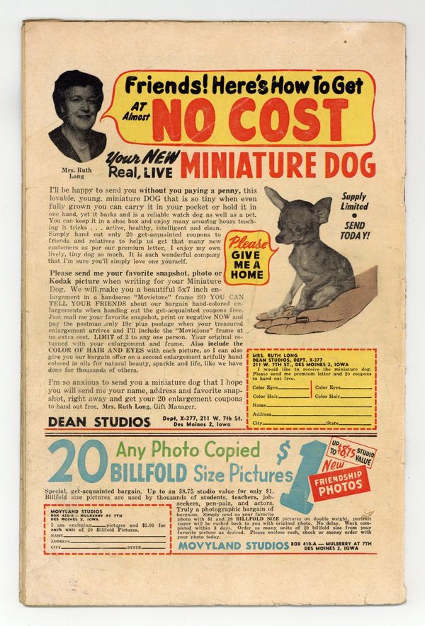 Cover by Harry Anderson. Stories by Paul S. Newman and unknown. Art by Al Hartley, Al Eadeh, Ed Moline, Mort Meskin, Bob McCarthy, George Roussos and unknown. The most unusual stories ever told! In this issue: "Bennett's Bride" with pencils by Al Hartley; 2-page text story "Rand's Ray"; "Terror Below!" with art by Al Eadeh; "The Survivor!" with story by Paul S. Newman and pencils by Ed Moline; "Death to the Witch!" by Paul S. Newman, Mort Meskin and George Roussos; and "A Werewolf There Was" with pencils by Bob McCarthy. 32 pages, full color. Cover price $0.10.