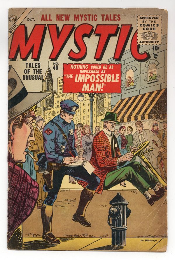 Cover by Sol Brodsky. Stories by Paul S. Newman and unknown. Art by Vic Carrabotta, Manny Stallman, Bill Everett, Paul Reinman, Bob Forgione and Jack Abel. Nothing could be as impossible as..."The Impossible Man"! Don't miss this mystic tale with art by Manny Stallman. Also in this issue: "A Million Years" by Paul S. Newman and Vic Carrabotta; "The One Who Was Nowhere!" with art by Bill Everett; 2-page text story "The Holiday"; "The Dreadful Decision!" with art by Paul Reinman; and "The Homeless Ones!" with art by Bob Forgione and Jack Abel. 32 pages, full color. Cover price $0.10.