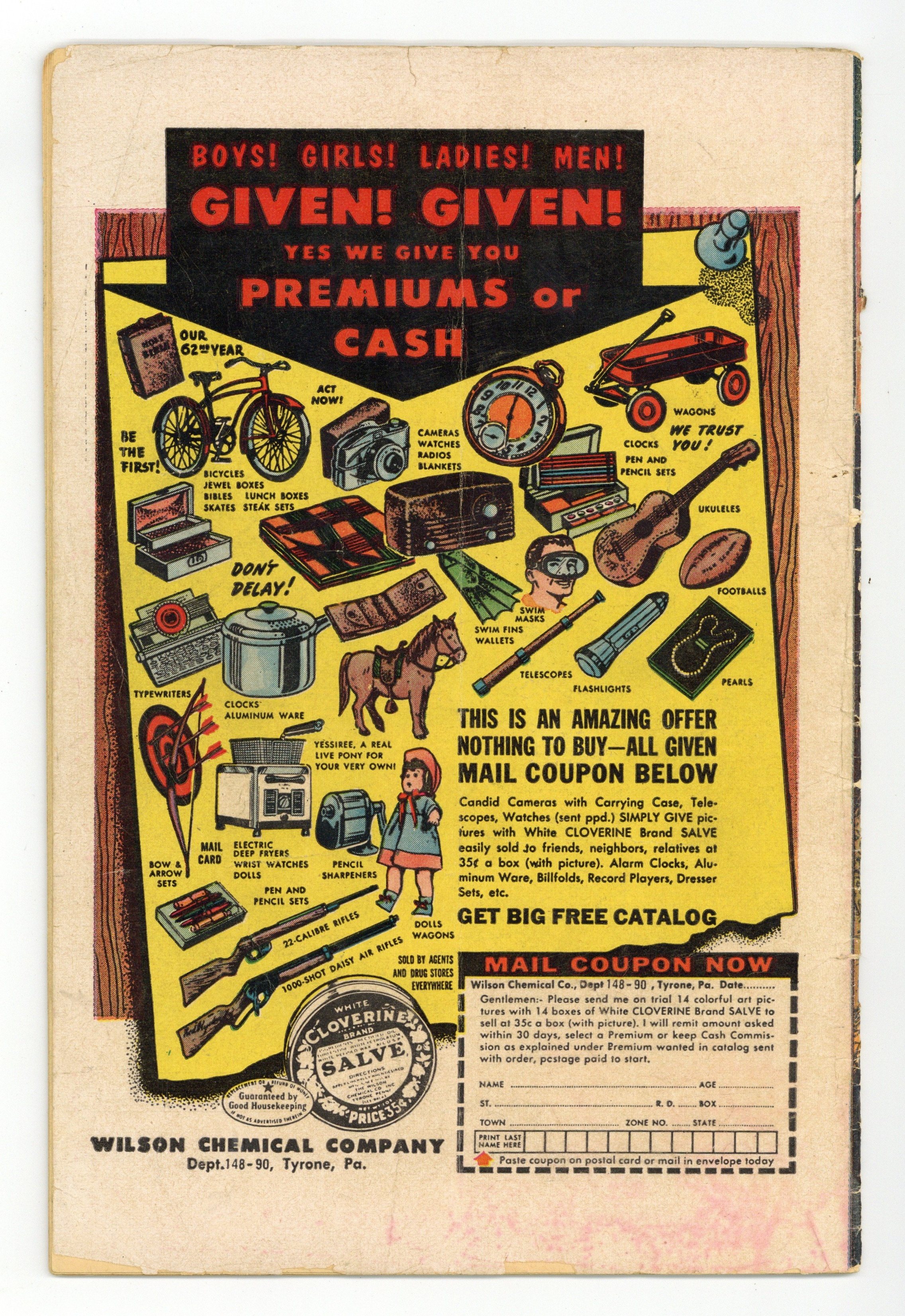 Cover by Bill Everett. Stories by Carl Wessler, Paul S. Newman and unknown. Art by Lou Cameron, Pete Morisi, Harry Lazarus, Bob McCarthy, Dave Berg and Manny Stallman. Tales of the unusual! In this issue: "Girl in a Trance" with art by Lou Cameron; "Prisoner in Nowhere" with art by Pete Morisi; "The Pushovers" by Carl Wessler and Harry Lazarus; "They're Coming Closer!" with art by Bob McCarthy; 2-page text story "Lost Marble"; "Behind the Mask" by Carl Wessler and Dave Berg; and "Torn and Tattered" by Paul S. Newman and Manny Stallman. 32 pages, full color. Cover price $0.10.