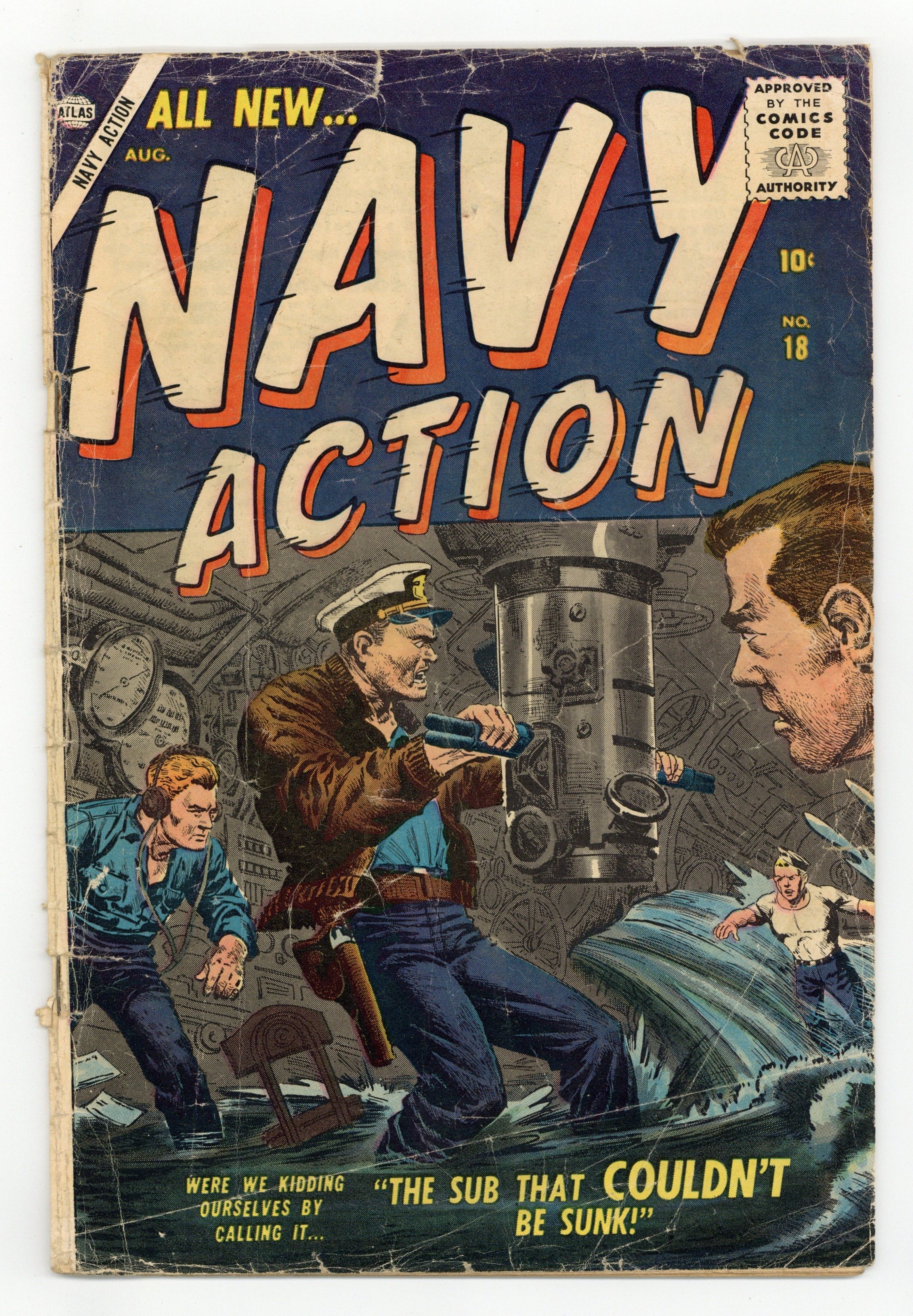$15.75"The Sub That Couldn't Be Sunk" (art by Gene Colan), "We Strike at the Reds" (art by Joe Maneely), "Counter-Attack," "The Human Decoy," "Destroyer" (art by Richard Doxsee), and a two-page text story, "Doing His Bit." Cover price $0.10.