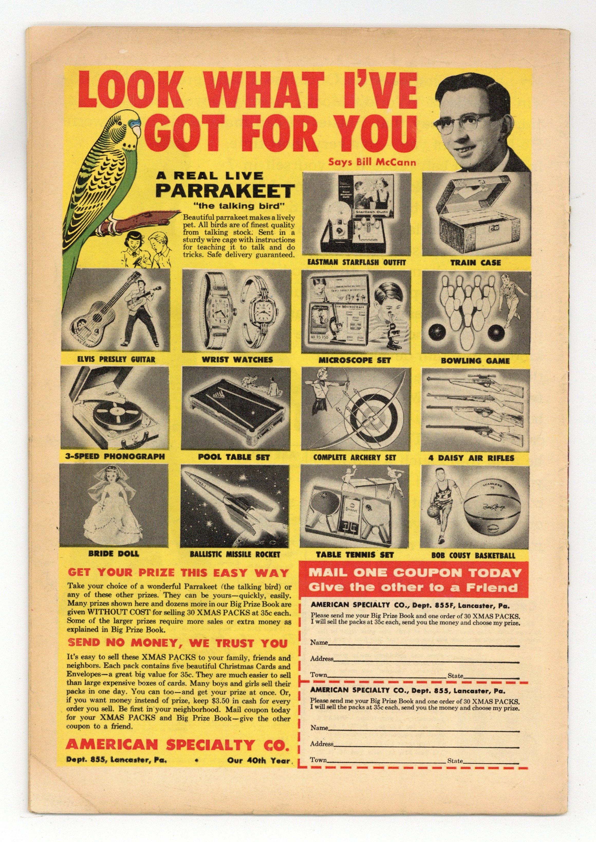 Published Dec 1958 by National Periodical Publ.$83.00Script by John Broome. Art and cover by Sid Greene. Series based on Charlie Chan television series starring J. Carroll Naish as Charlie Chan and James Hong as his son, Barry Chan. 36 pages, full color. Cover price $0.10.