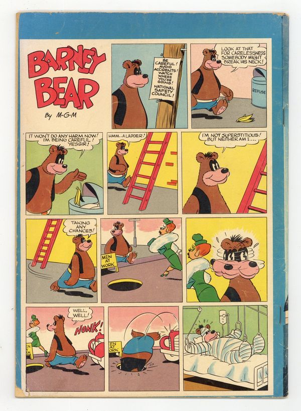 $21.00Cover by Walt Kelly. Stories and art by Walt Kelly, Carl Barks, Gaylord Du Bois, Dan Gormley, H. R. McBride and John Stanley. Based on the popular movie shorts also known as Little Rascals, Dell's Our Gang Comics featured early work by Pogo's Walt Kelly and other cartooning greats. In a story by Kelly, Baxter, a young genius inventor, meets Feeney and The Gashouse Gang, who try to trick him into believing that they're the original Our Gang. A book on medicine gives Barney Bear hypochondria, in an early story by legendary Uncle Scrooge creator Carl Barks. Jerry and Tuffy find a nickel, but before they can decide how to spend it, it accidentally rolls into a sleeping Tom's mouth. Wuff the Prairie Dog Finds a New Friend; Our Gang; Flip 'n' Dip; Tom and Jerry; Johnny Mole; Barney Bear and Benny Burro. 32 pages, Full Color. Cover price $0.10.