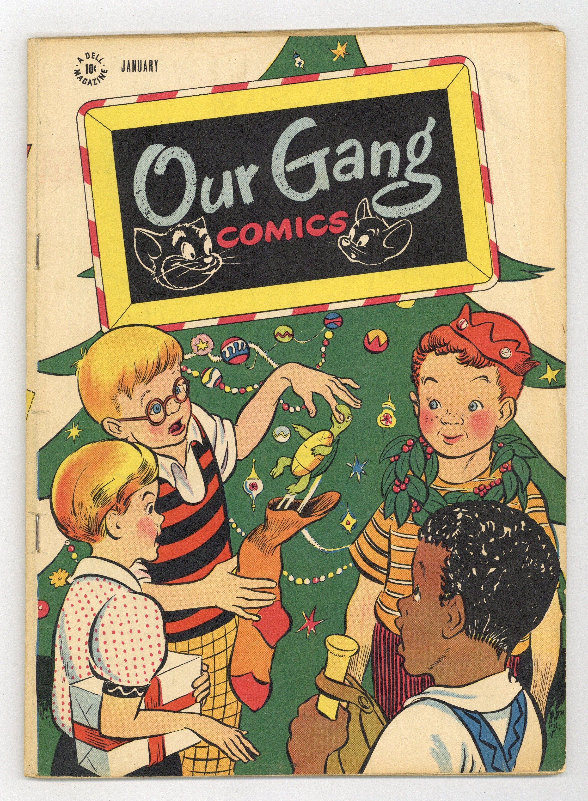 Cover by Walt Kelly. Stories and art by Walt Kelly, Carl Barks, H. R. McBride and Vive Risto. Based on the popular movie shorts also known as Little Rascals, Dell's Our Gang Comics featured early work by Pogo's Walt Kelly and other cartooning greats. In a story by Kelly, the rival Gashouse Gang tries to sabotage star pitcher Froggie before the big baseball game. Barney attempts to retrieve golf balls from the lake, in an early story by legendary Uncle Scrooge creator Carl Barks. But first he must elude the golf-course manager. Timothy's Good Deed; Our Gang; Flip 'n' Dip; Tom and Jerry; Barney Bear and Benny Burro; Wuff the Prairie Dog. 48 pages, Full Color. Cover price $0.10.