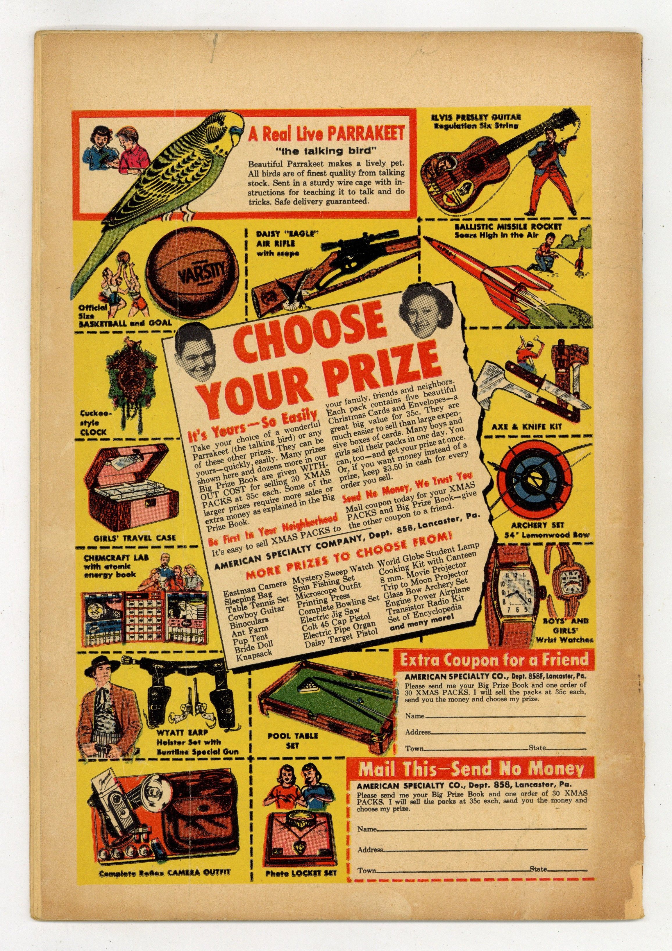 Published 1958 by Charlton Comics Group.$32.50- 1 1/2" cumulative spine split. Cover oxidation. Water spotting.