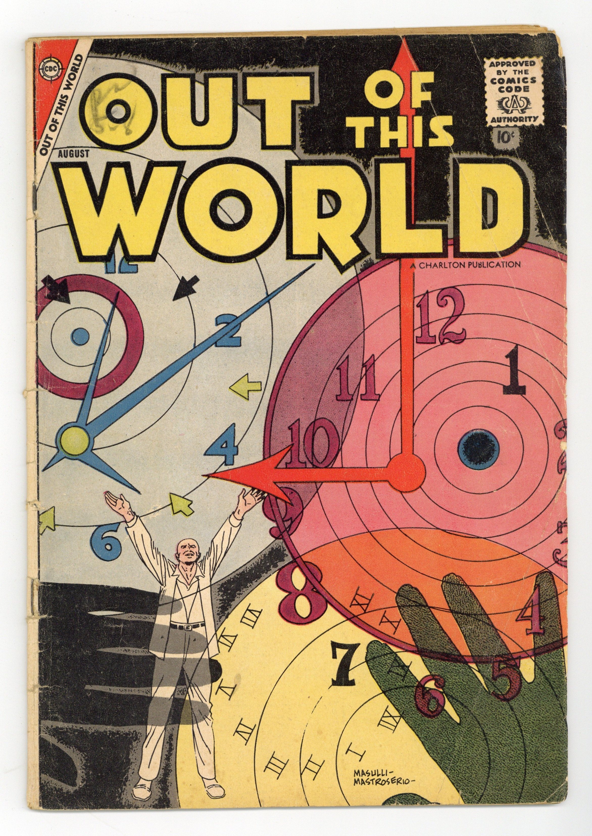 Cover by Pat Masulli and Rocco "Rocke" Mastroserio. Stories and art by Steve Ditko, Gene Colan, Bill Molno and Vince Alascia. Charlton responds to the new Comics Code with kid-friendly tales of science fiction, often illustrated by Steve Ditko or other future comics legends. Refugees flee their planet after robots take over, in one of several stories in his issue with art by Spider-Man co-creator Steve Ditko. In another Ditko story, a wealthy wine merchant describes how a show by gypsy acrobats changed his life for the better. Bullying outlaw Tom Molton meets his match, in a Western sci-fi story with early art by another future Marvel legend, Gene Colan. Journeys End; They Dont Come Back; Manana; The Lost Tribe; Reservoir Rescue; Johnny on the Spot; Lightning Gun. 32 pages, Full Color. Cover price $0.10.