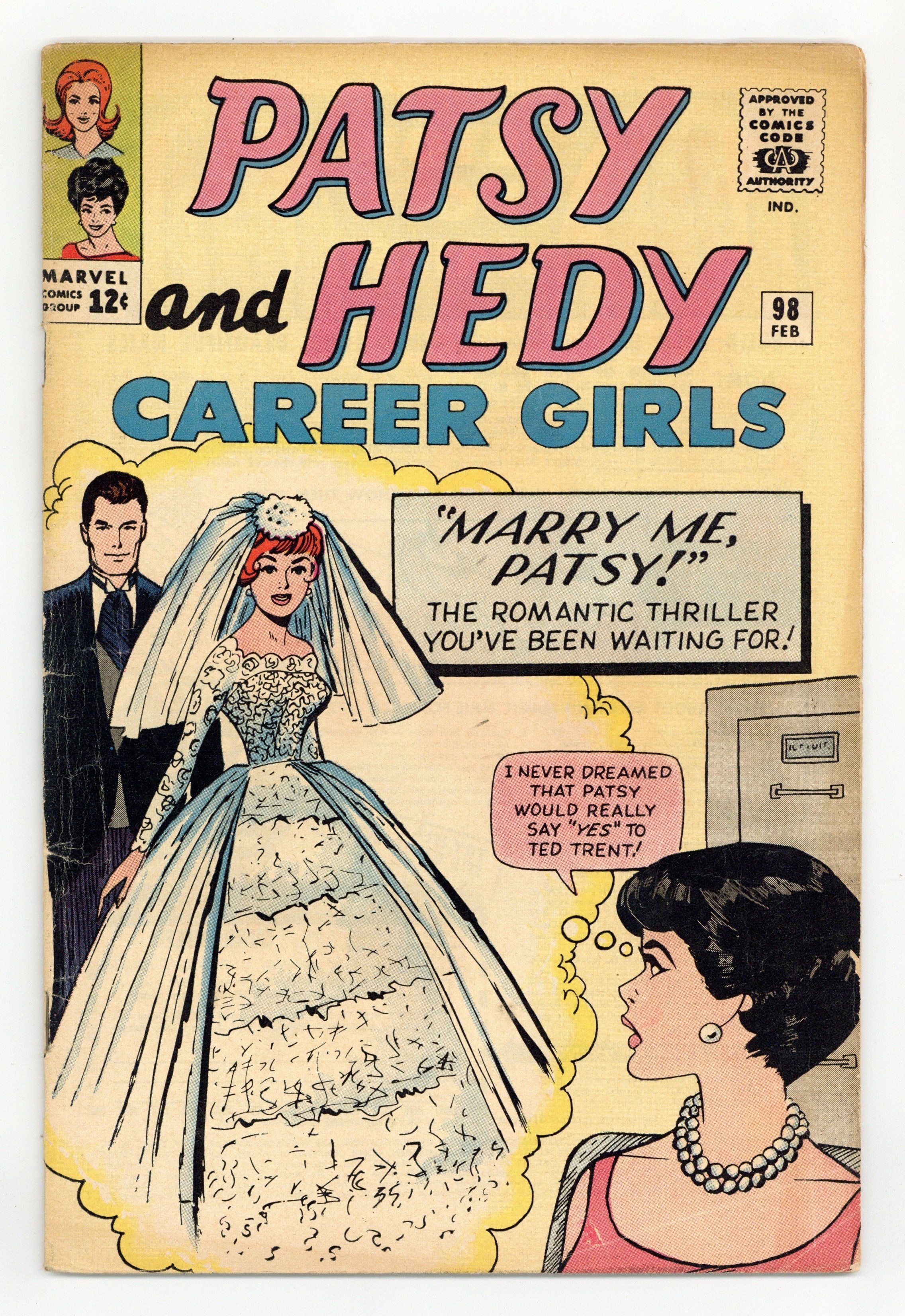 $16.75Cover pencils by Al Hartley, inks by Vince Colletta. Marry Me, Patsy!, script by Stan Lee, pencils by Al Hartley. Patsy's Heavenly Hair Styles fashion page. Ted Trent's Office Clothes! fashion page. Hedy's Charming Coiffures! fashion page. Paper dolls. 36 pgs. $0.12. Cover price $0.12.