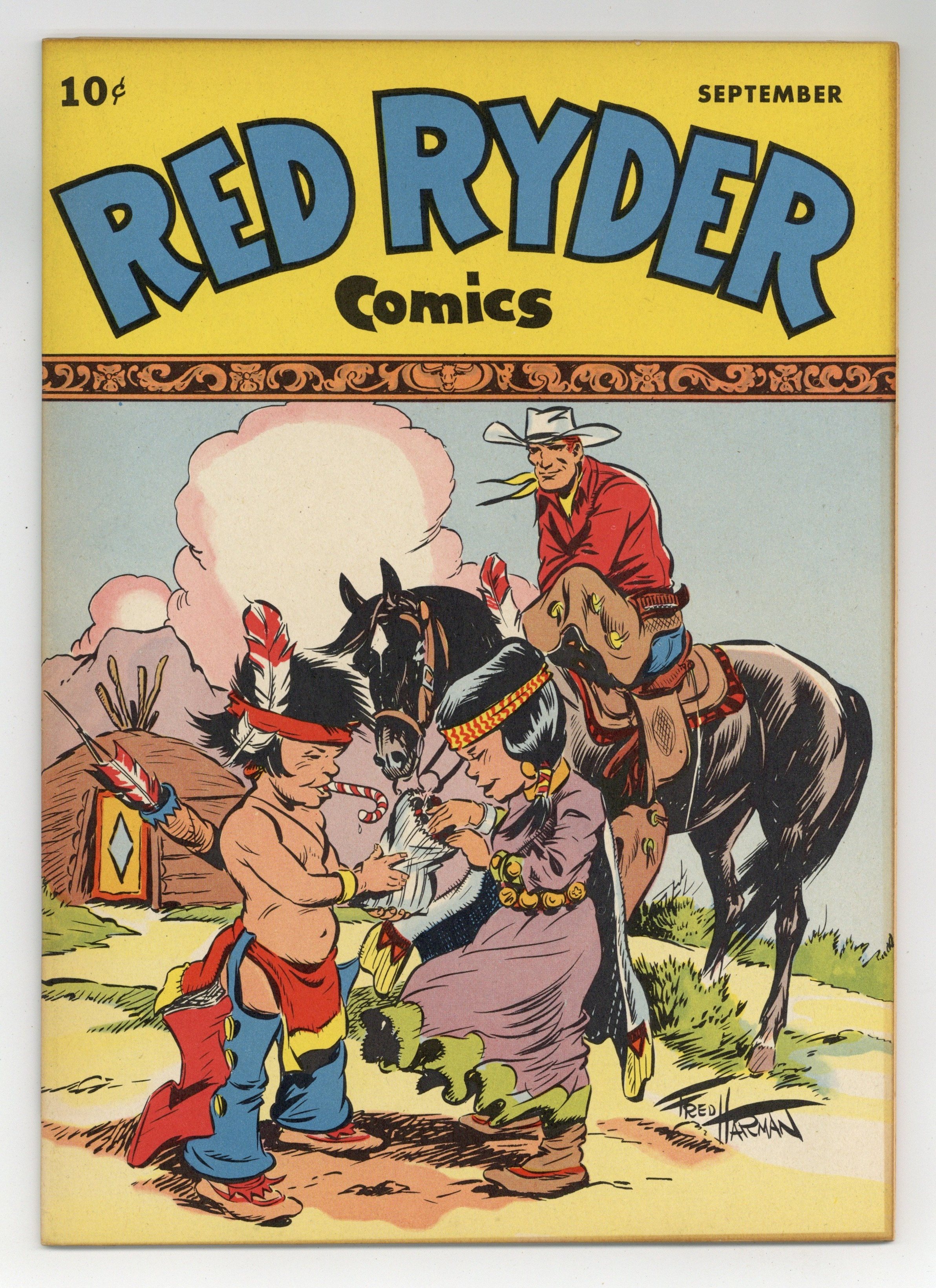 Red Ryder, Telecomics presents King of the Royal Mounted, the Kiyotee Kids, and Panamint Patty. Three-page text story, "Little Beaver Steals a Ride." Photo back cover (Red Harmon, creator of Red Ryder). 52 pages, full color. Cover price $0.10.