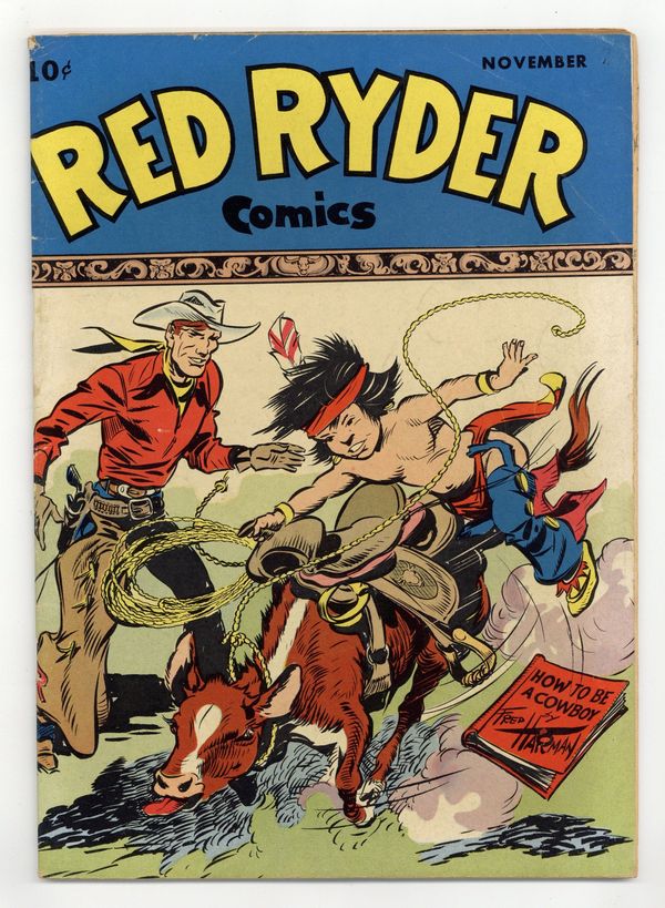 $23.00Red Ryder, Telecomics presents King of the Royal Mounted, the Kiyotee Kids, and Panamint Patty. Three-page text story, "Little Beaver Ropes a Rascal." Photo back cover (Red Harmon, creator of Red Ryder). 52 pages, full color. Cover price $0.10.