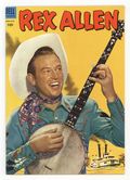 Photo cover features Rex Allen. Stories and art by August Lenox and others. Western action with movie cowboy Rex Allen. On vacation in Mexico, Rex and his cowboy friends get mixed up in a professor's search for a lost Aztec Idol. Soon outlaws are on the trail of the professor's treasure map, and they kidnap his beautiful daughter Wendy to get it. Rex sees two men forcing another to jump from a high cliff into the river below, and that's when he leaps into action. Plus an article about cowboy slang and language. The Cowboy's Language; Rex Allen and the Aztec Idol; Black-Out; Los Brazos De Dios, the "Arms of God." 32 pages, Full Color. Cover price $0.10.