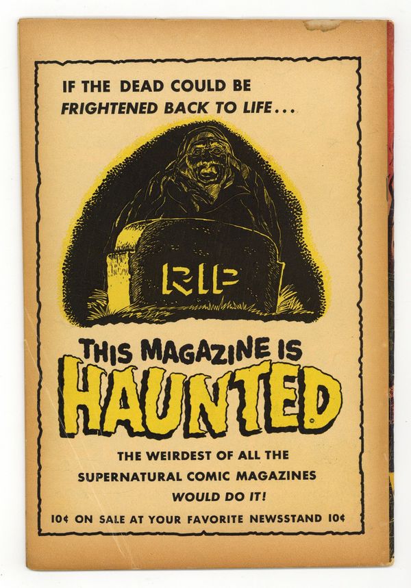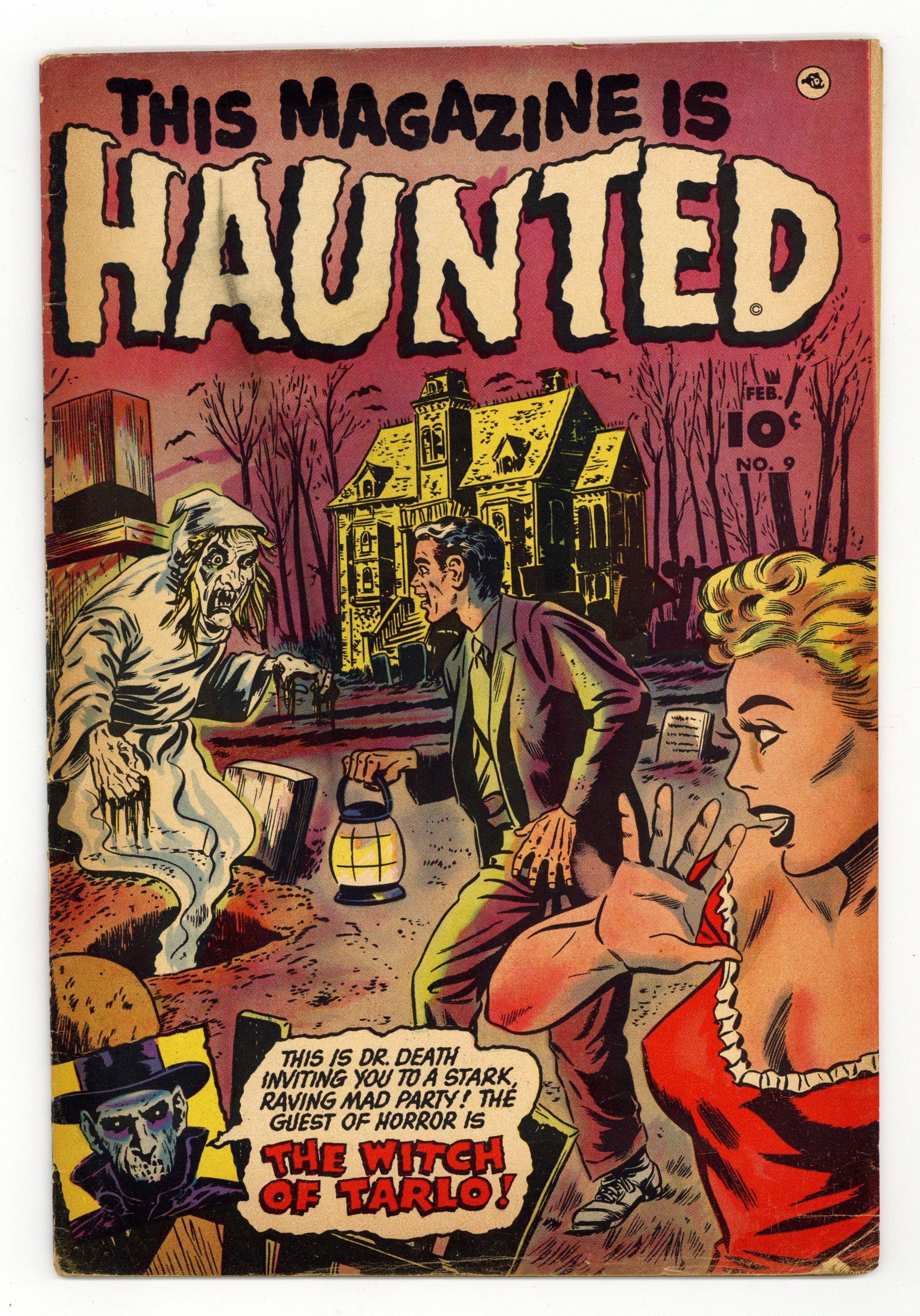 Edited by Will Lieberson, V.A. Provisiero and Al Jetter. Stories by Bill Woolfolk and unknown. Art by Shelly Moldoff, Bob McCarty, Leonard Frank and unknown. Horror tales that are so scary they could only lead you to believe that This Magazine is Haunted! In this issue: Dr. Death invites you to a stark raving mad story! An old and evil witch is accidentally resurrected and haunts a young couple which moved in an abandoned New England home in "The Witch of Tarlo" with art by Shelly Moldoff. Plus: Jack Karven buys a devil's mask to wear to a masquerade. He commits evil deeds, kills the rival for his love and is in for an unpleasant surprise in "Devil's Mask!" by Bill Woolfolk and Bob McCarty. Also: Donald Matson, owner of a private zoo, is presented with a beautiful tigress. The animal however can transform into a mysterious white lady and makes Matson fall in love with her -- with fatal consequences -- in "Lady or the Tigress?" by Woolfolk and Leonard Frank. And: Two men mysteriously survive a car crash unharmed and find themselves in a strange "house of doors." They are stranded in limbo and have to find their way back to life or on to death in "The House of Doors"! Plus: 2-page text story "Old Suzy" written by John Martin, and ads for Strange Stories from Another World and Worlds of Fear. 36 Pages, Full Color. Cover price $0.10.