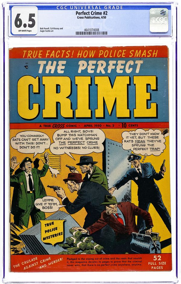 "Cat and Mouse" (art by Bob Powell); "Murder Perfectly Disguised" (art by Cal Massey); "Crime Without Clues!"; "Murder With No Exit!"; "Double Entry" (art by Massey); "Frankie Janes"; and "The Vampire Bat Kill!" (art by Augie Scotto). Cover price $0.10.
