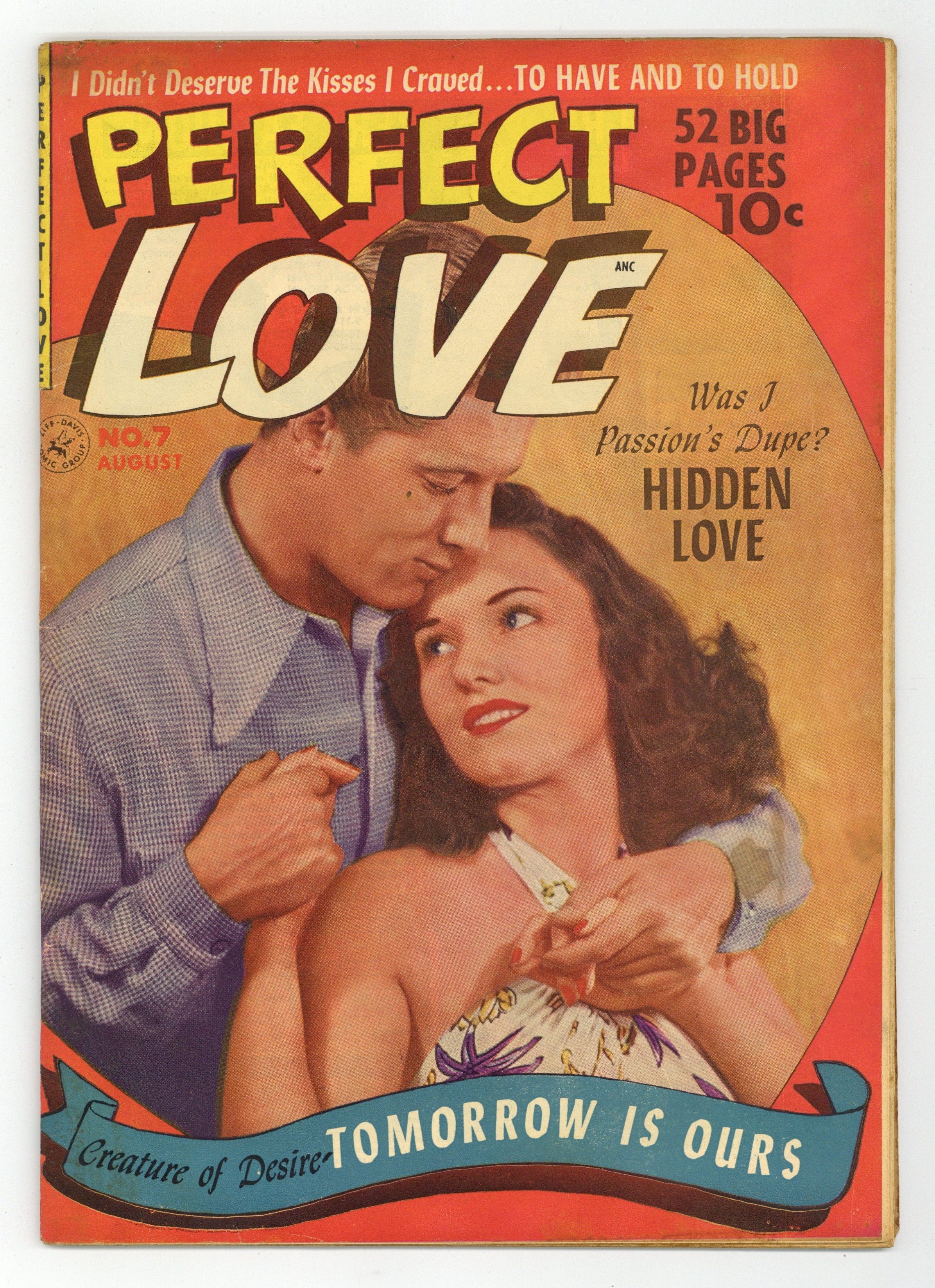 Photo cover. "Hidden Love"; When Mr Harcourt leaves Ellen home alone on the Singapore island of Sumbawa, an injured stranger appears; She falls for Eric and lies to Inspector Fadiz that she has seen no one when he comes looking for a jewel thief. "Tomorrow Is Ours"; Anne is engaged to Pete, a "sandhog" (tunnel worker) who is studying to become a supervisor; Bored, Anne starts dating Petes roommate Tony; When Pete finds out, he breaks up with her, and Tony also dumps Anne because he only wanted "some fun." "The Wedding Dress"; Meg and Tom are young, passionately in love and planning to marry; Then he joins the army to fight in Korea; Meg wants to marry immediately, but Tom says they should wait; Months later, the news comes that Tom is wounded. "Love Letter to Five Million" text story. "To Have and to Hold"; Former mechanic Hal is recently graduated as a doctor when his fiance Kathy turns up with burst appendix; With other doctors away, Hal must operate but Kathy dies; Hal abandons medicine and becomes a mechanic with a traveling carnival. "Love's Fighting Heart"; Washed-up boxer Slugger takes on Rocky as his protégé; Rocky falls for Sluggers daughter Ellen, but she is jealous of his rapport with her father; To ruin his career, she tells Rocky shell marry him if he makes a lot of money, so he goes against Sluggers advice and accepts too many bouts. "Deadline for Love"; Foreign correspondent Carol loves Roger, head of her papers Athens bureau, but is sent to the Greek-Romanian border for an extended period; On his way to visit Carol, Roger is captured by bandit Georgio. Carol helps Roger escape and Georgio is caught. 52 pgs., full color. Cover price $0.10.