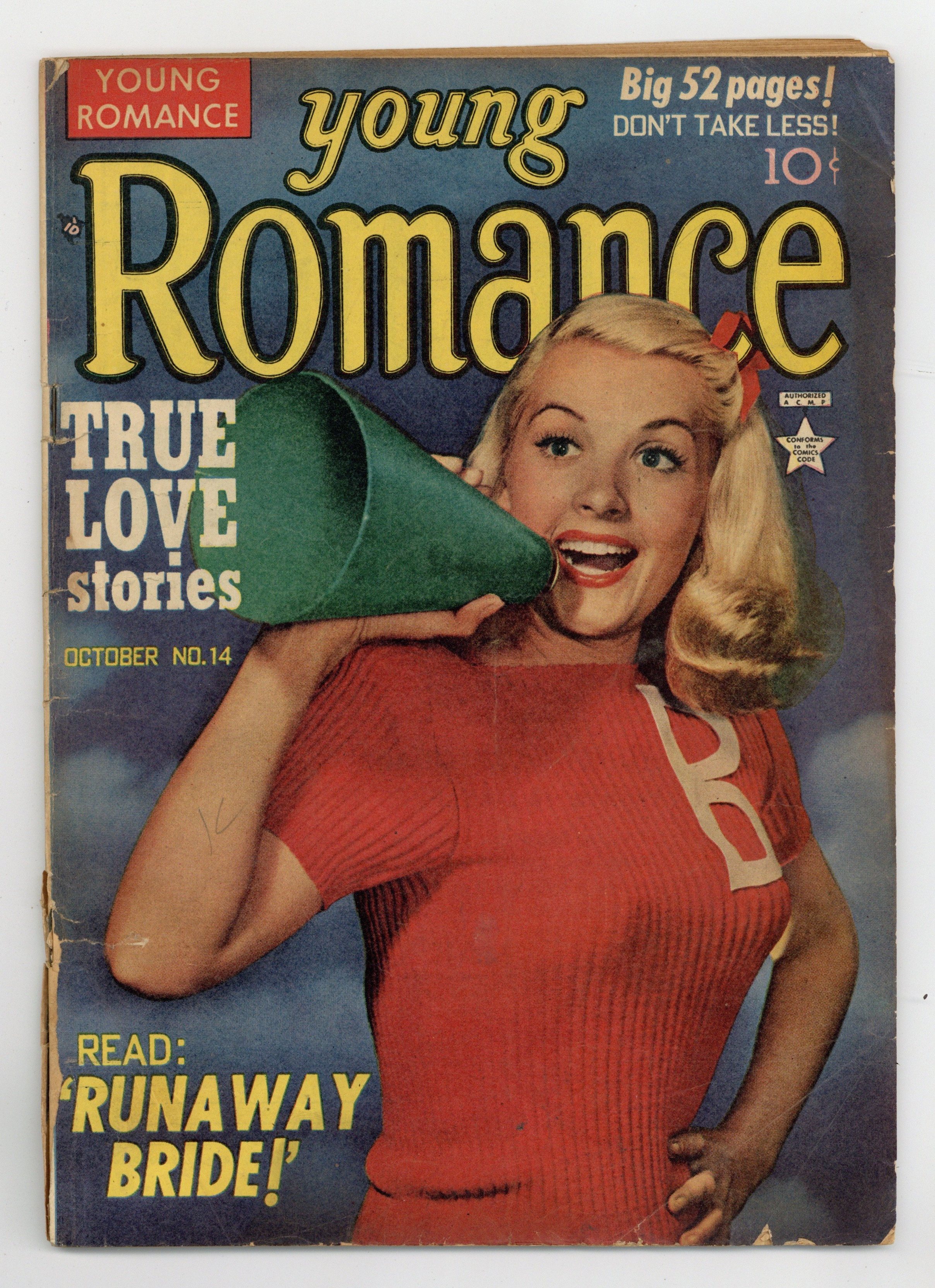 #14 on cover; Vol. 3 No. 2 in indicia. Photo Cover by Theda and Emerson Hall of "Barbara Bates, Warner Bros. Starlet." Stories by unknown. Art by Jack Kirby, Bill Draut, Bruno Premiani?, Vic Donahue and Joe Simon. Featuring: "Runaway Bride!"; "No Prescription for Love!"; "The Man for Us!"; "The Barrier Between Us!"; and a 3-page Nancy Hale's Problem Clinic story! Plus: 2-page text story "Cruise to Romance"! Also: 1-page Good Manners Will Make You RATE with Your Date advice column! 52 pages, full color. Cover price $0.10.
