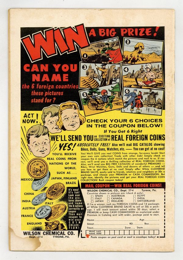 $24.50Painted cover by John Rosenberger. Edited by Richard E. Hughes. Stories by Richard Hughes. Art by John Forte and Bill Everett. Tales of romance from legendary early independent comics publisher ACG, one of the earliest romantic comics of the postwar era. Millie falls for the police officer who keeps writing her tickets; A can-do cowgirl falls for a handsome New Yorker; Lila is alarmed when Eric throws firecrackers at her, but it turns out he has a good reason. Millie and the Cop!; The Beachcomber; I Can Do Better!; Smart Sister; Love Is an Explosive Thing!; Research in Romance! 32 pages, Full Color. Cover price $0.10.