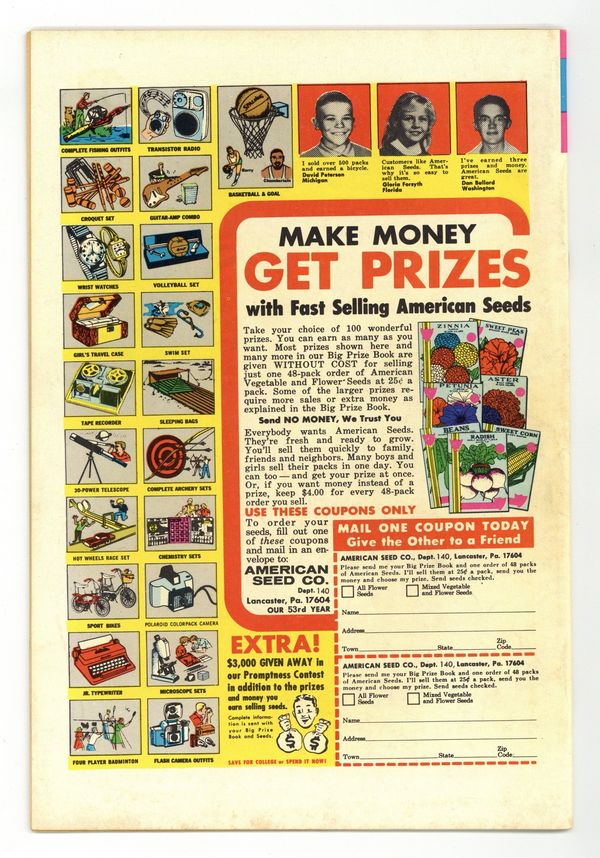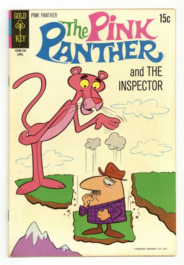 $295.00Comic book version of the famous cartoon character. Cover art by Phil DeLara. "Congratulations! It's Pink!", script by Carl Fallberg, art by Phil de Lara; Pink Panther steals a picnic basket with a baby in it. "Pink in the Drink," script by Carl Fallberg, art by Phil de Lara; Pink Panther is shanghaied to server on a sailing ship. Gold Key Comics Club News. "Sea? Si', Sir!", script by Carl Fallberg, art by Phil de Lara; The Inspector and Sergeant are on the trail of Captain Clamity. "Extinct Pink," script by Carl Fallberg, art by Phil de Lara; Pink Panther helps dig up dinosaur bones. Stamp And Coin Collector's Corner article by George Allard. 36 pgs., full color. Cover price $0.15.