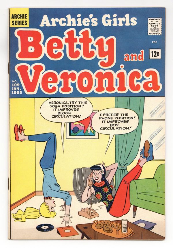 Cover pencils by Dan DeCarlo, inks by Rudy Lapick. "Sayonara," pencils by Dan DeCarlo, inks by Rudy Lapick; Ra Nee, the rich daughter of a Japanese restauranteur, is caught in the middle between the traditional Japanese values of her father and the modern, American-influenced values of her best friend and her love interest. Betty pinup, Veronica pinup, pencils by Dan DeCarlo, inks by Rudy Lapick. "Hold That Lion," pencils by Dan DeCarlo, inks by Rudy Lapick; When Veronica can't get a part in the school circus production equal to that of Betty's as a lion tamer, she decides to sabotage Betty's part in the revue. Archie's Christmas Stocking ad. "Squeaky Clean," pencils by Dan DeCarlo, inks by Rudy Lapick; Betty and Veronica invent a stain-removing solution. "Flop Flipped" one-page Li'l Jinx story, script and art by Joe Edwards. "The Payoff," script by Frank Doyle, pencils by Dan DeCarlo, inks by Rudy Lapick; Veronica bribes Jughead to not go with Archie to the Saturday night basketball game, so she can take Archie on a date. 36 pgs., full color. $0.12. Cover price $0.12.
