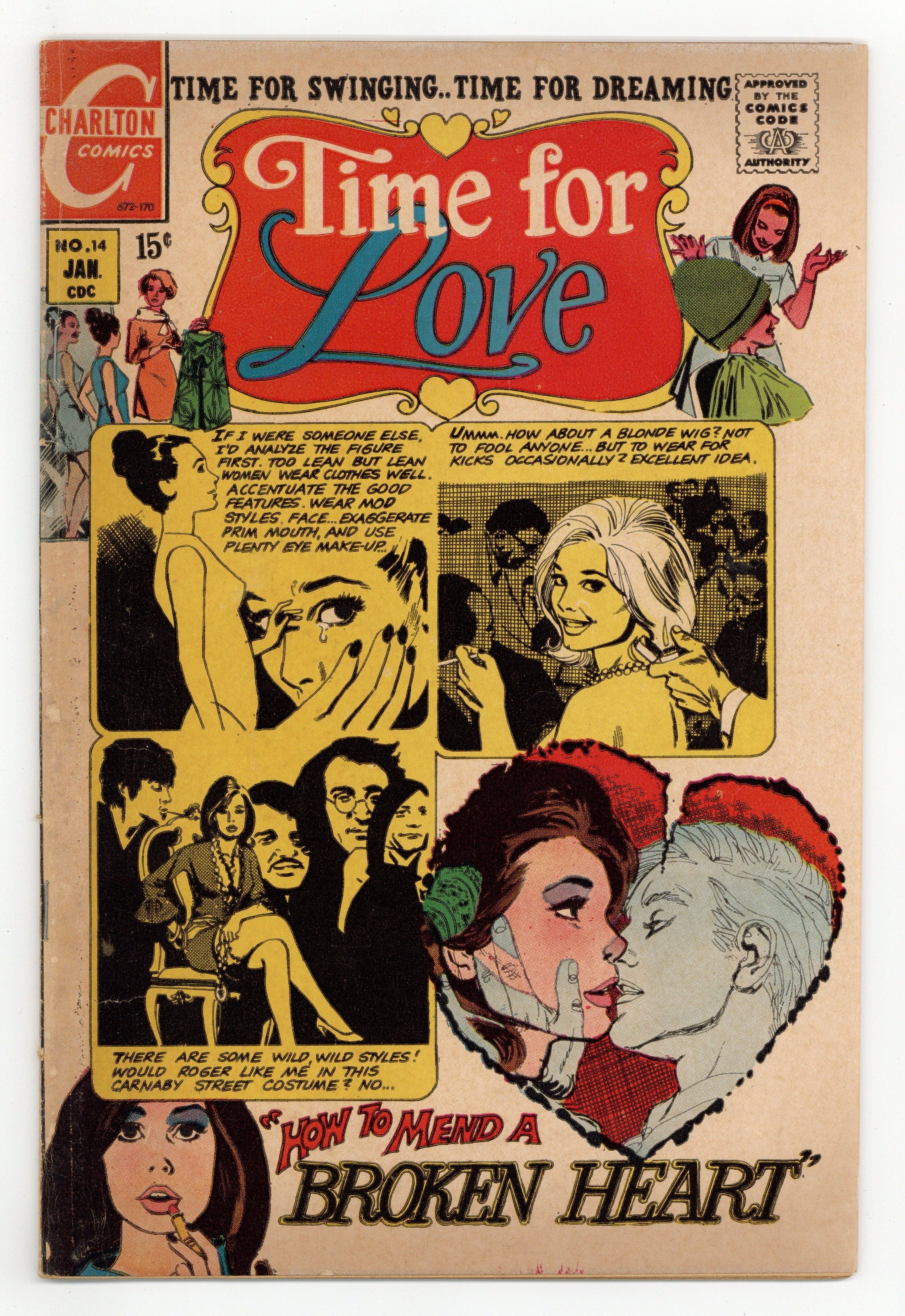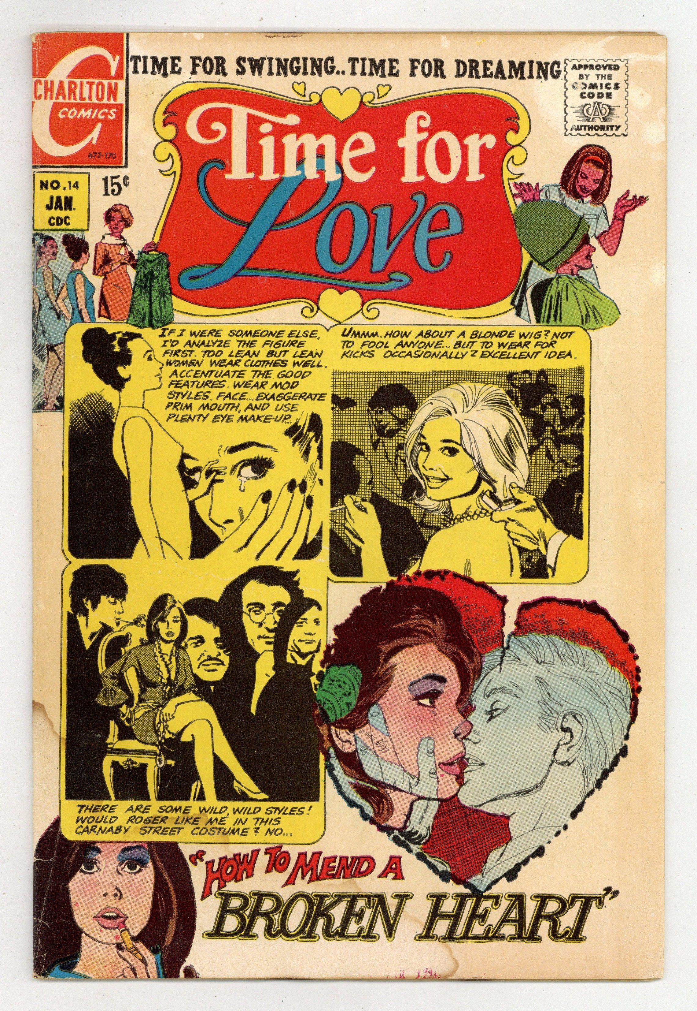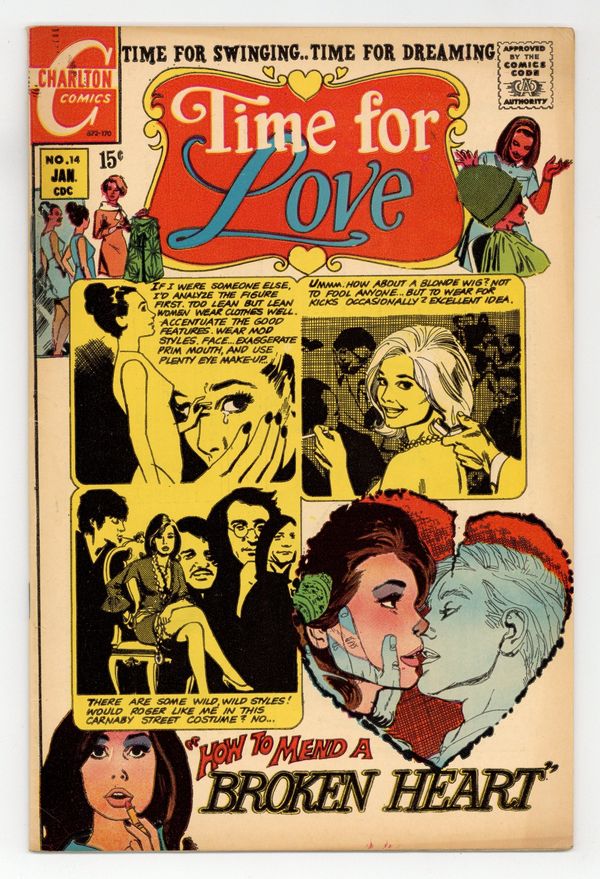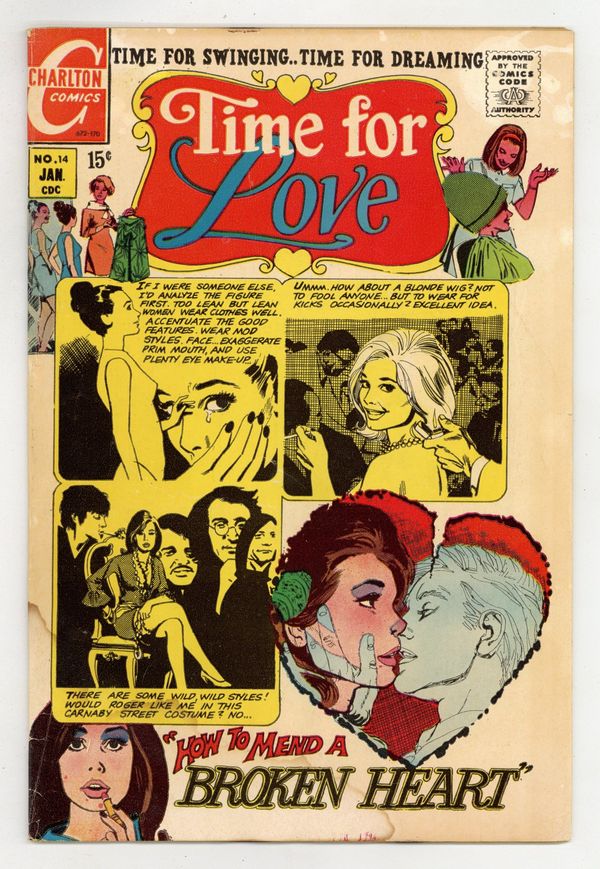 Published Jan 1970 by Charlton Comics Group.$25.00Cover by Jose Luis Garcia-Lopez. Stories and art by Jose Luis Garcia-Lopez, Bill Montes, Vince Colletta, Charles Nicholas, and Vince Alascia. Couples navigate the mazelike pathways of relationships and love in the 1960s and '70s. After giving him the cold shoulder on the slopes, Prudence finally tells ski bum Neil why she only wants to marry a rich guy. A woman decides to reinvent herself to see if she can win Roger back, or at least get over him. Plus romantic advice from the 1960s. Anothers Love; Love Comes Later; Canteen Corner; How to Mend a Broken Heart! 32 pages, Full Color. Cover price $0.15.
