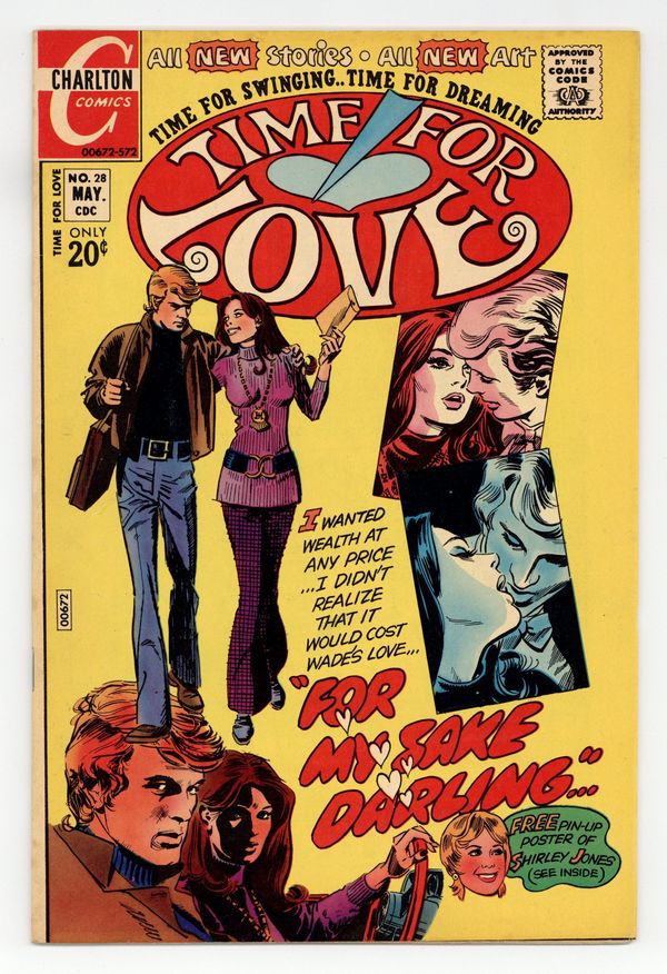 Published May 1972 by Charlton Comics Group.$50.00Cover by Jose Luis Garcia-Lopez. Stories and art by Jose Luis Garcia-Lopez, Art Cappello, Fred Himes, Charles Nicholas and Vince Alascia. Couples navigate the mazelike pathways of relationships and love in the 1960s and '70s. A woman wants a rich husband, but she doesn't realize it will cost her Wade, the man who really loves her. Amy is lonesome on her grandparents' ranch in Nevada, but then she meets handsome Kent. Plus a pinup of Shirley Jones of TV's The Partridge Family, and romance advice. Empty Land, Empty Arms; Don't Remind Me!; Teen-Age Troubles; A Time for Tears; For My Sake, Darling. 32 pages, Full Color. Cover price $0.20.