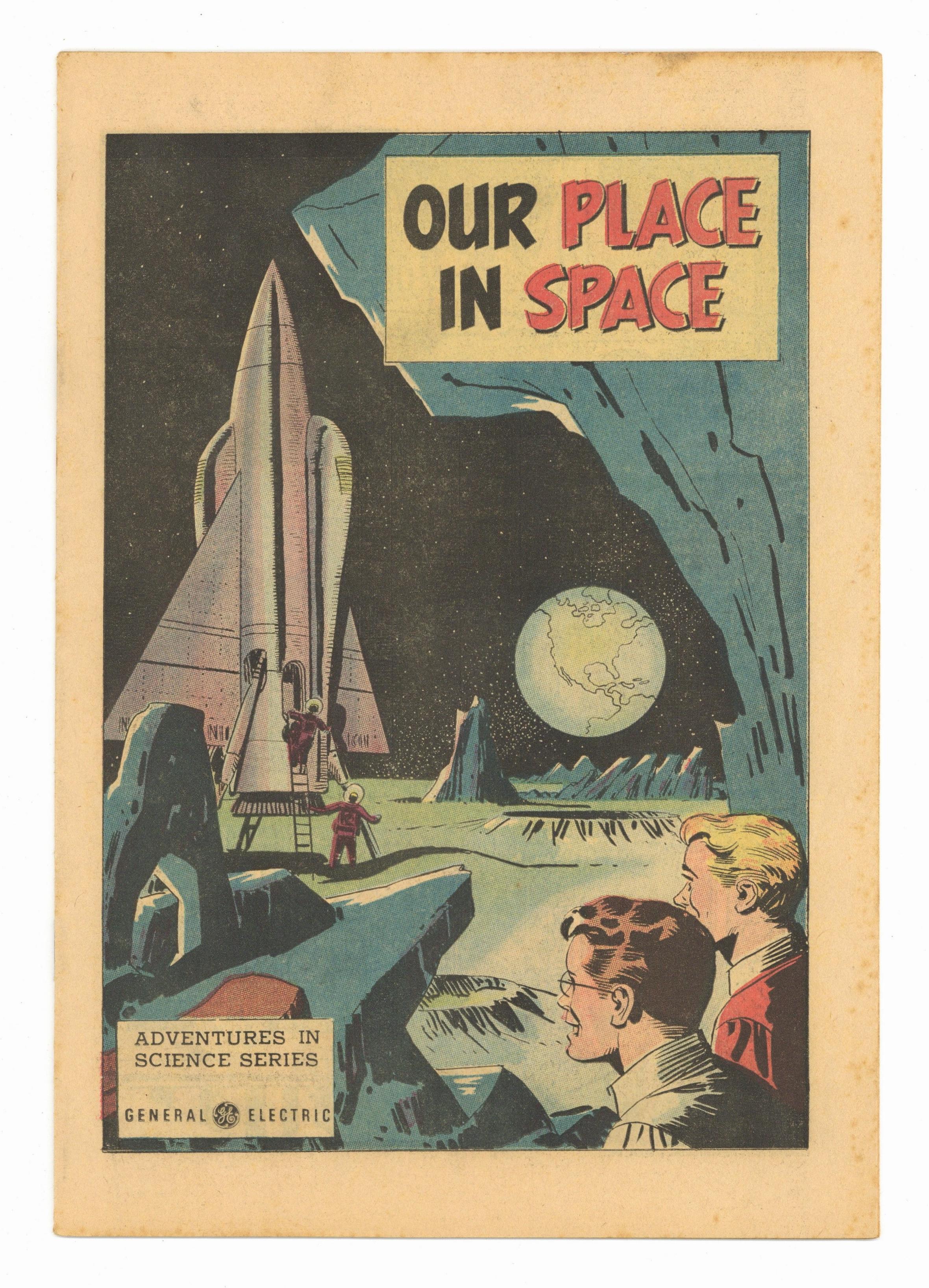 Published 1959 by Pictorial Media.$11.00Our Place in Space (1959) is a promotional comic published by General Electric as part of their Adventures in Science series. 16 pages, full color, 7-in. x 10-in., all newsprint, no cover price.