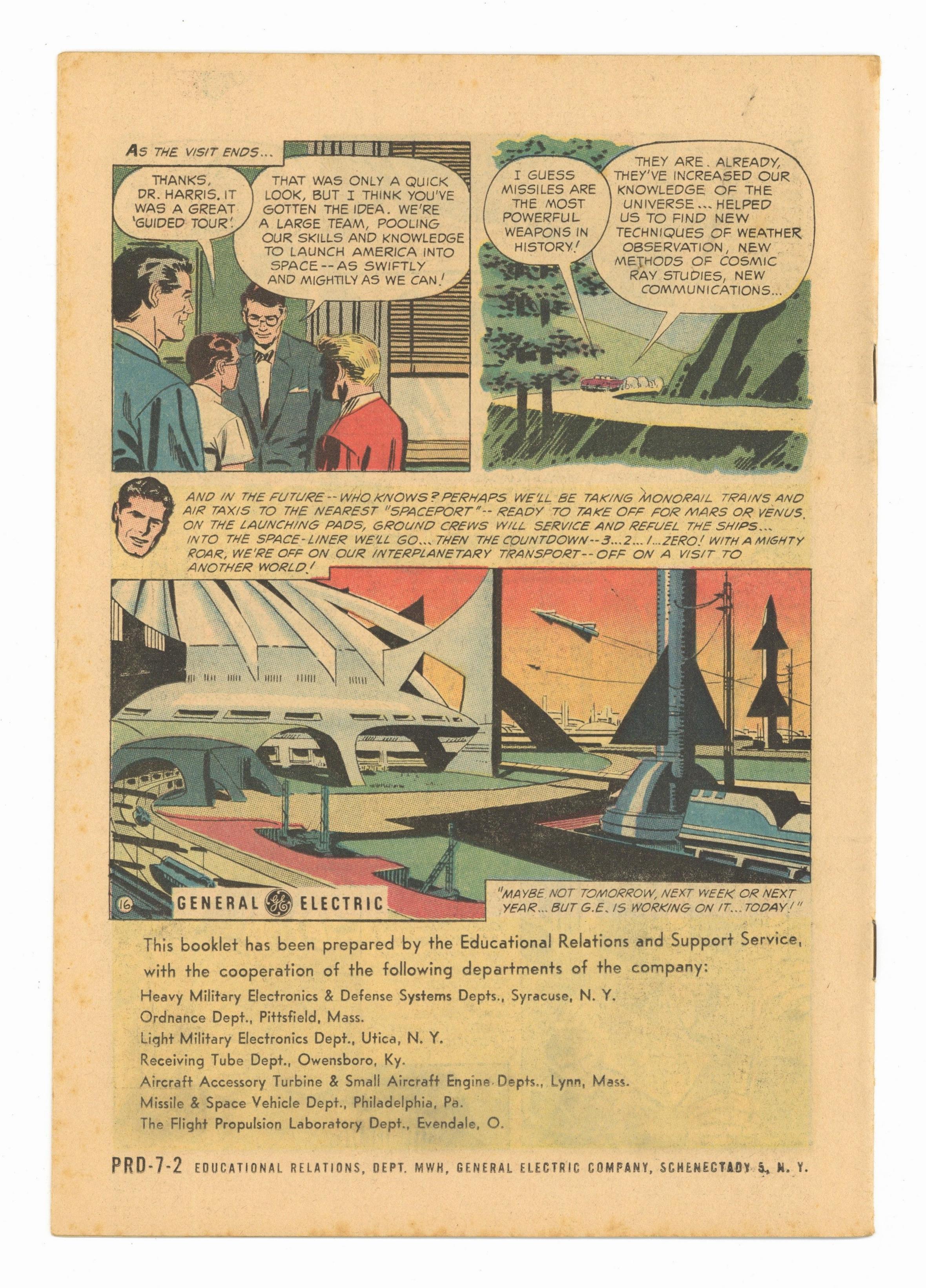 Published 1959 by Pictorial Media.$9.00Our Place in Space (1959) is a promotional comic published by General Electric as part of their Adventures in Science series. 16 pages, full color, 7-in. x 10-in., all newsprint, no cover price.