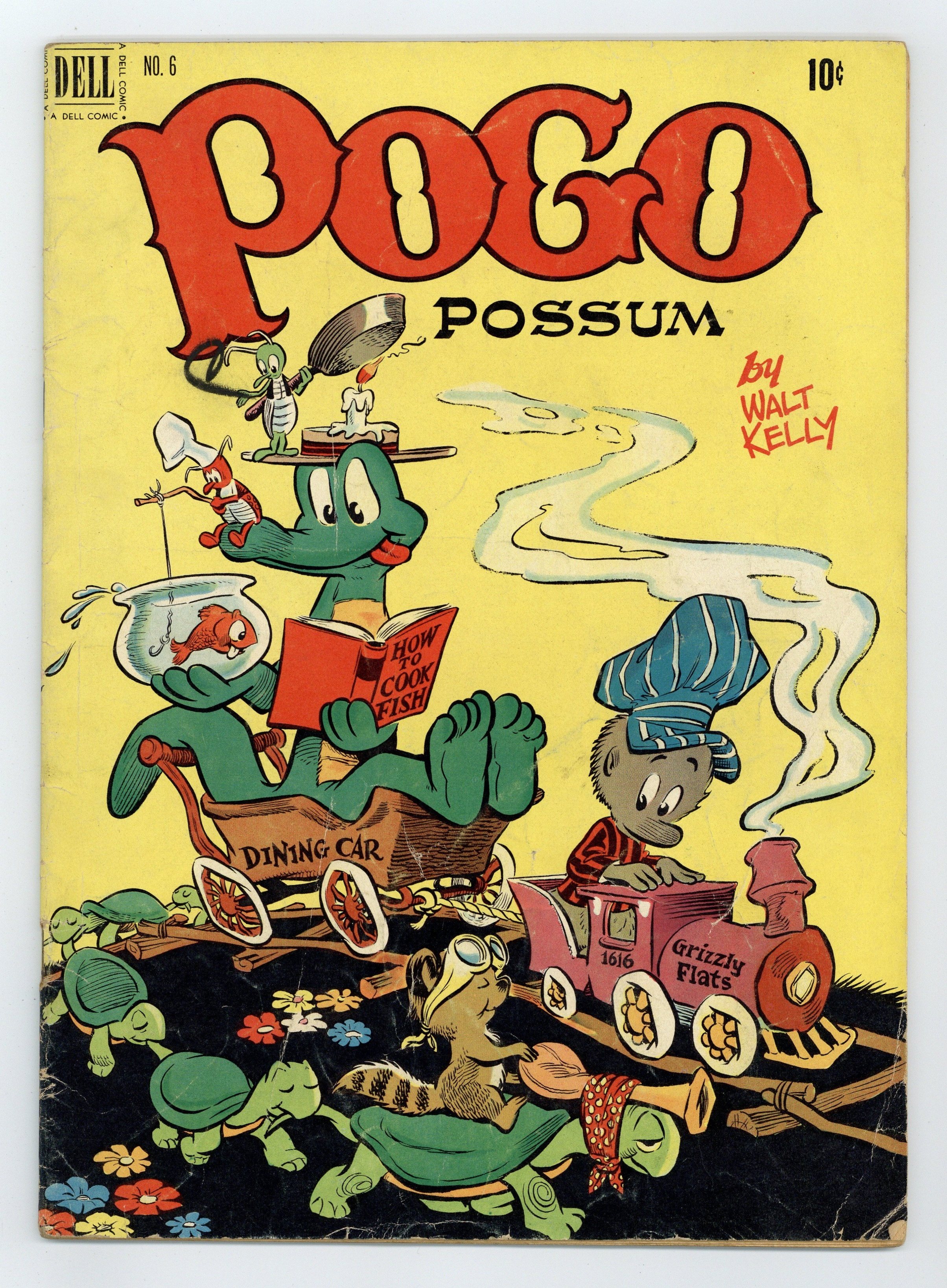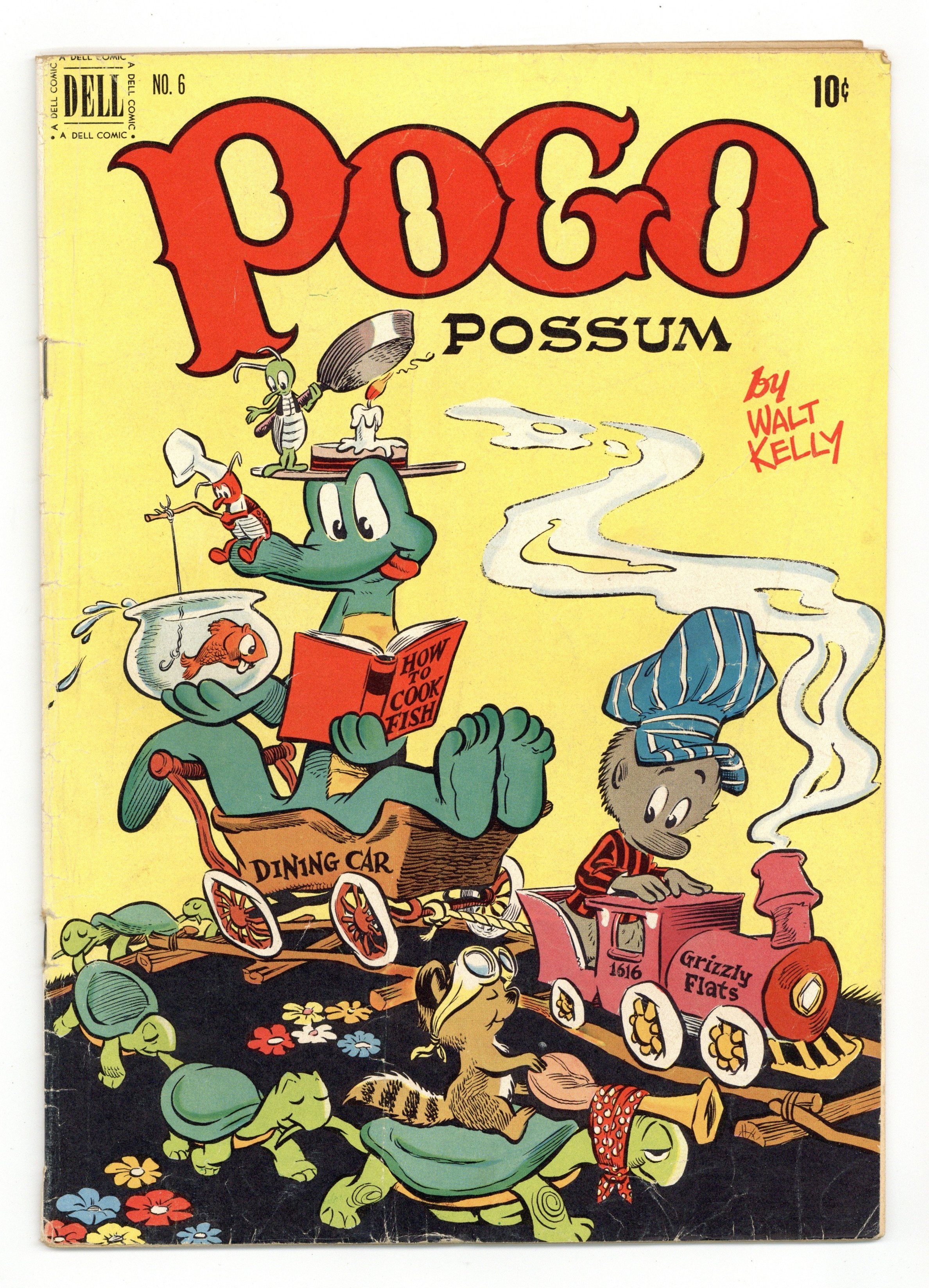 $19.00Cover art by Walt Kelly. Scripts and art by Walt Kelly. "Uncle Albert's Bedtime Story" text story. "The Puzzle Master"; Alabaster and Rackety Coon Chile trick Albert into extreme foolery using the instructions for a jig-saw puzzle. "The Howl and the Pussycat"; Howland and Churchy act out the children's rhyme "The Owl and the Pussycat." "How To Be Prepared (Delicious-Like)"; Albert tries tricking the fish into being part of his supper. "The Spin of the Yarn"; Reenactment of the "Chicken Little" story with Pup Dog acting the part of Chicken Little, and the cast in general playing along, Albert being the King. Untitled one-page story; The rabbit cannot hear Albert asking if he wants any tea. 36 pages, full color. Cover price $0.10.