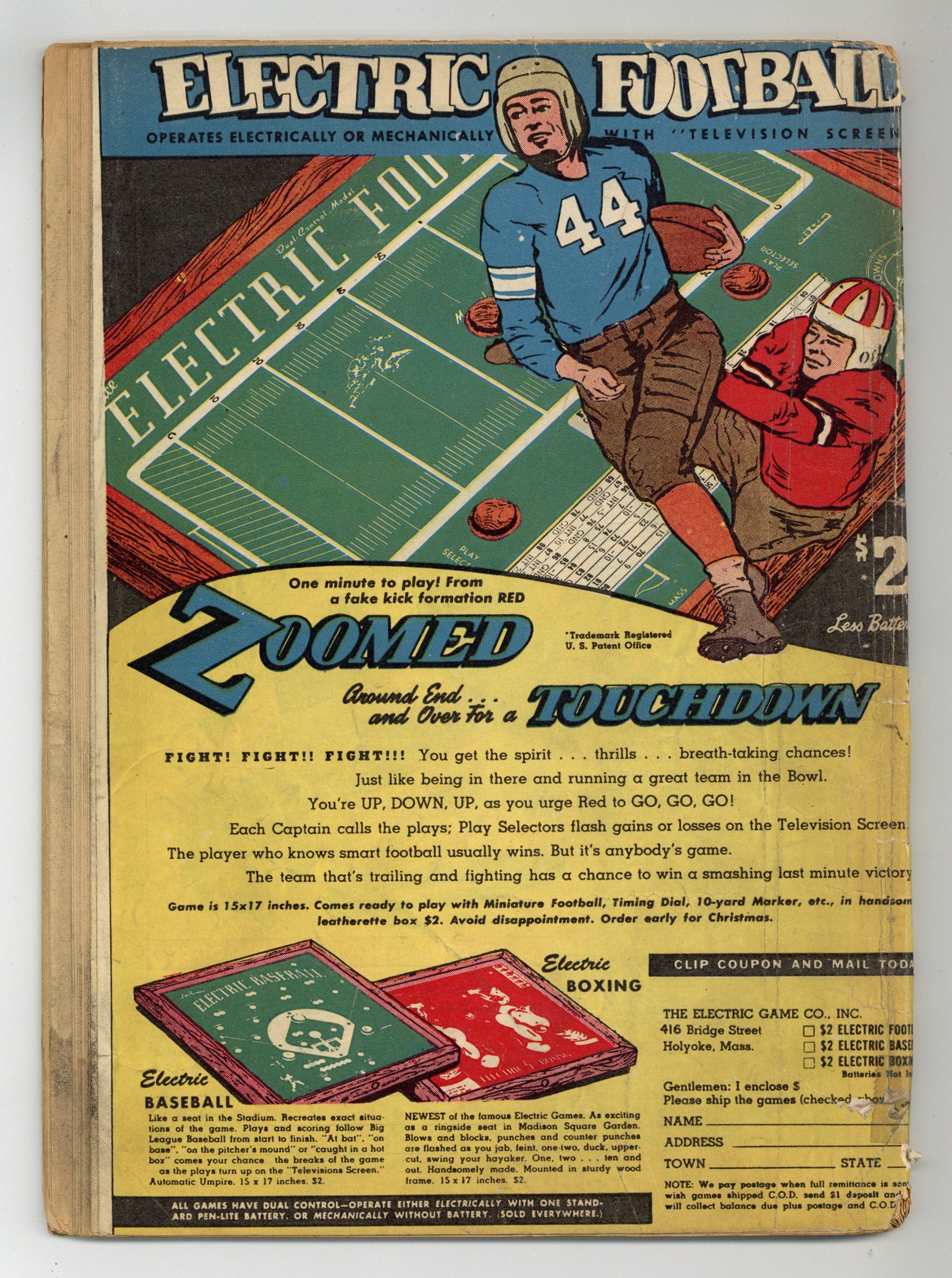 Cover art by Jack Cole. Love Comes To Woozy starring Plastic Man, script and art by Jack Cole. Manhunter story, art by Al Bryant. Burp the Twerp story, script and art by Jack Cole. Candy story, art by Harry Sahle. Human Bomb story, script and art by Paul Gustavson. Flatfoot Burns story, art by Marvin Stein. Spirit story, script and art by Will Eisner. 60 pgs. $0.10. Cover price $0.10.