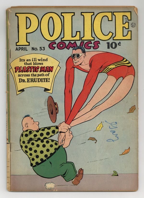 Cover art by Jack Cole. Plastic Man story, script and art by Jack Cole. Sweet Sleep starring Flatfoot Burns, script and art by Al Stahl. Human Bomb story, script and art by Paul Gustavson. Candy story, script and art by Harry Sahle. Manhunter story, art by Al Bryant. Spirit story, script by Bill Woolfolk, pencils by Lou Fine. 60 pgs. $0.10. Cover price $0.10.