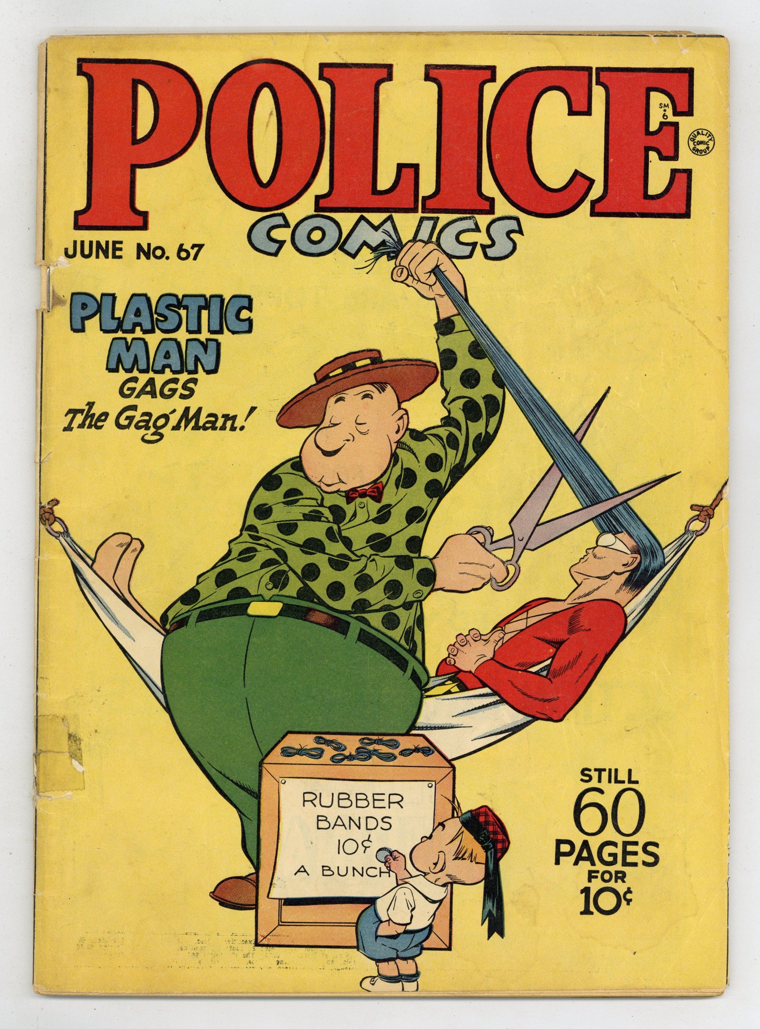 Cover art by Jack Cole. The Gag Man starring Plastic Man, script and art by Jack Cole. Honeybun story, script and art by Paul Gustavson. Flatfoot Burns story. Candy story, script and art by Harry Sahle. Spirit story, art by Lou Fine. Specks story, script and art by Michael Senich. Manhunter story. 60 pgs. $0.10. Cover price $0.10.