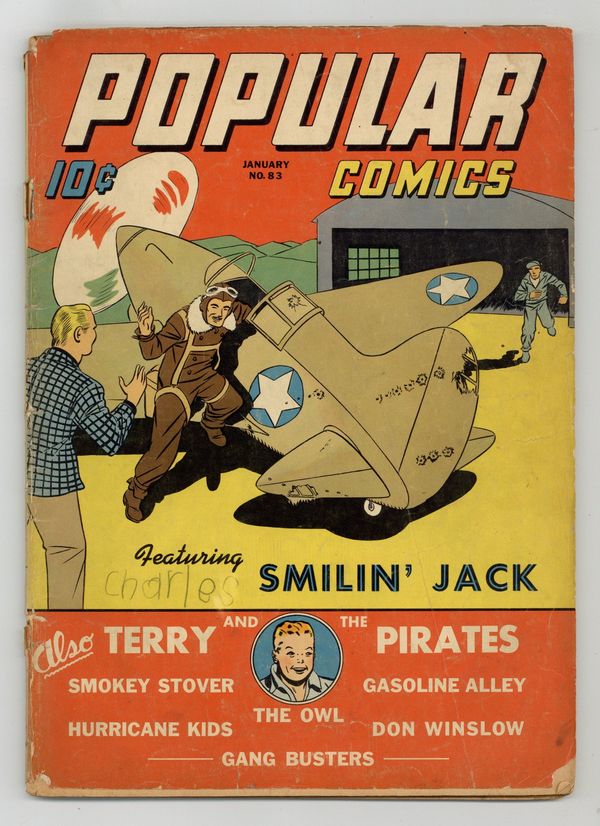 Stories and art by Milton Caniff, Bill Holman, Frank King, Zack Mosley, Boody Rogers, Frank Thomas, Gaylord Du Bois, John Hampton, Arthur Jameson, Gus Edson, Frank V. Martinek, Leon A. Beroth, Albert Hartje and Bill Ely. An early comic book from Dell, featuring reprinted newspaper comic strips alongside new material. Terry thought that Madame Sud looked familiar, but Sud reveals to April Kane that she is secretly the female pirate Sanjak. Robin Hood sets out to rescue the Lady Hilda from Malvin the Butcher. Chief Winston investigates a blackout protection racket. Also featuring popular strips Smokey Stover and Gasoline Alley. The Gumps; Smilin' Jack; Terry and the Pirates; The Return of Robin Hood; Cyclone; Don Winslow; Smokey Stover; Gasoline Alley; The Owl; Gang Busters; The Hurricane Kids. 64 pages, Full Color. Cover price $0.10.