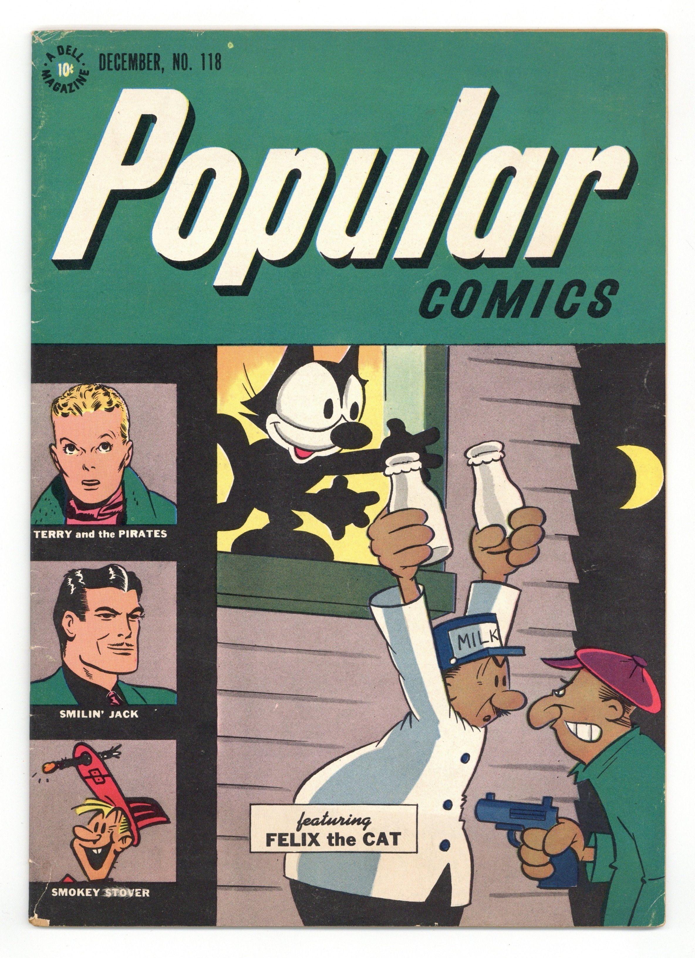 Tags: Comic Strip Reprints$21.00Stories and art by Milton Caniff, Bill Holman, Frank King, Zack Mosley, Boody Rogers, Elliott Caplin, Jay McArdle, Gus Edson, Otto Messmer, George Swanson, Cliff Sterrett, Jimmy Murphy, and Gaylord Du Bois. An early comic book from Dell, featuring reprinted newspaper comic strips alongside new material. Smilin' Jack and Cindy barely escape from Toemain with their lives, but Toemain's enforcer isn't so lucky. Hu Shee and Tang manage to turn the entire Chinese Army against themselves. Uncle Cole sends Smokey Stover a present that requires both a fishbowl and a birdcage. Also featuring popular strips Gasoline Alley and Felix the Cat. Smilin' Jack; Terry and the Pirates; Toots and Casper; Polly and Her Pals; The Gumps; The Flop Family; Felix the Cat; Dr. Bobbs; Smokey Stover; Gasoline Alley; Gang Busters. 32 pages, Full Color. Cover price $0.10.