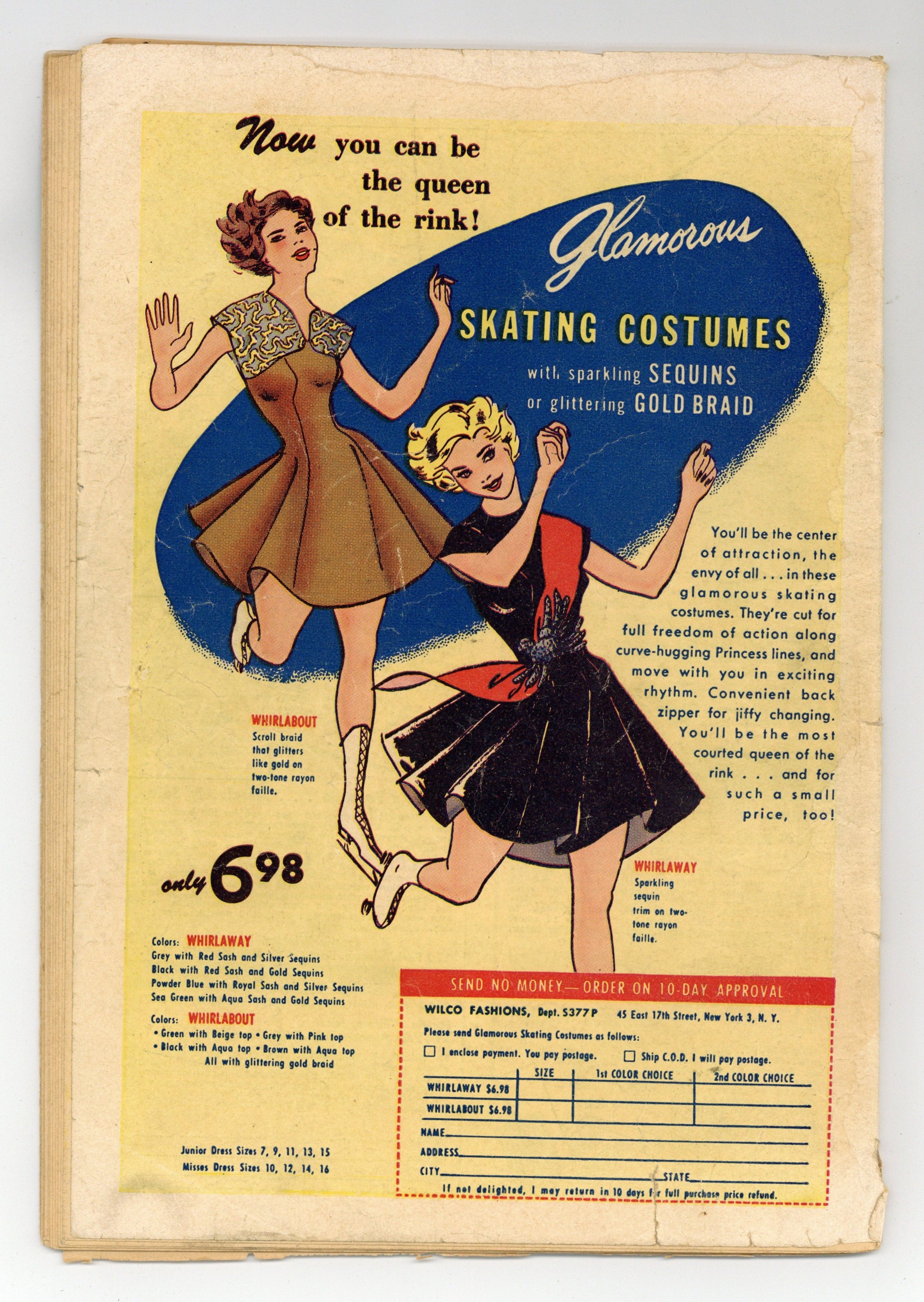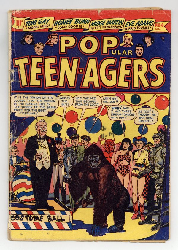 Contains original and reprinted material as noted. Untitled Toni Gay story, art by Norman Nodel, reprinted in Mr. Monsters Hi-Shock Schlock (1987) #2; Toni and Butch take up horseback riding to improve their posture. "The Showoff Showdown" art by Manny Stallman, reprinted without original title from School Day Romances (1949) #1; Honey joins the high school baseball team and shows up Lefty. " Masquerade Melee" reprinted from School Day Romances (1949) #1; Midge plays cupid for Hercule and Constance. Villain's Villa; Eve inadvertently gets involved with a gang of bandits while traveling in Italy with her aunt. "White Walled Romance" text story, reprinted from School Day Romances (1949) #1. White Walled Romance text story. 36 pages, full color. Cover price $0.10.