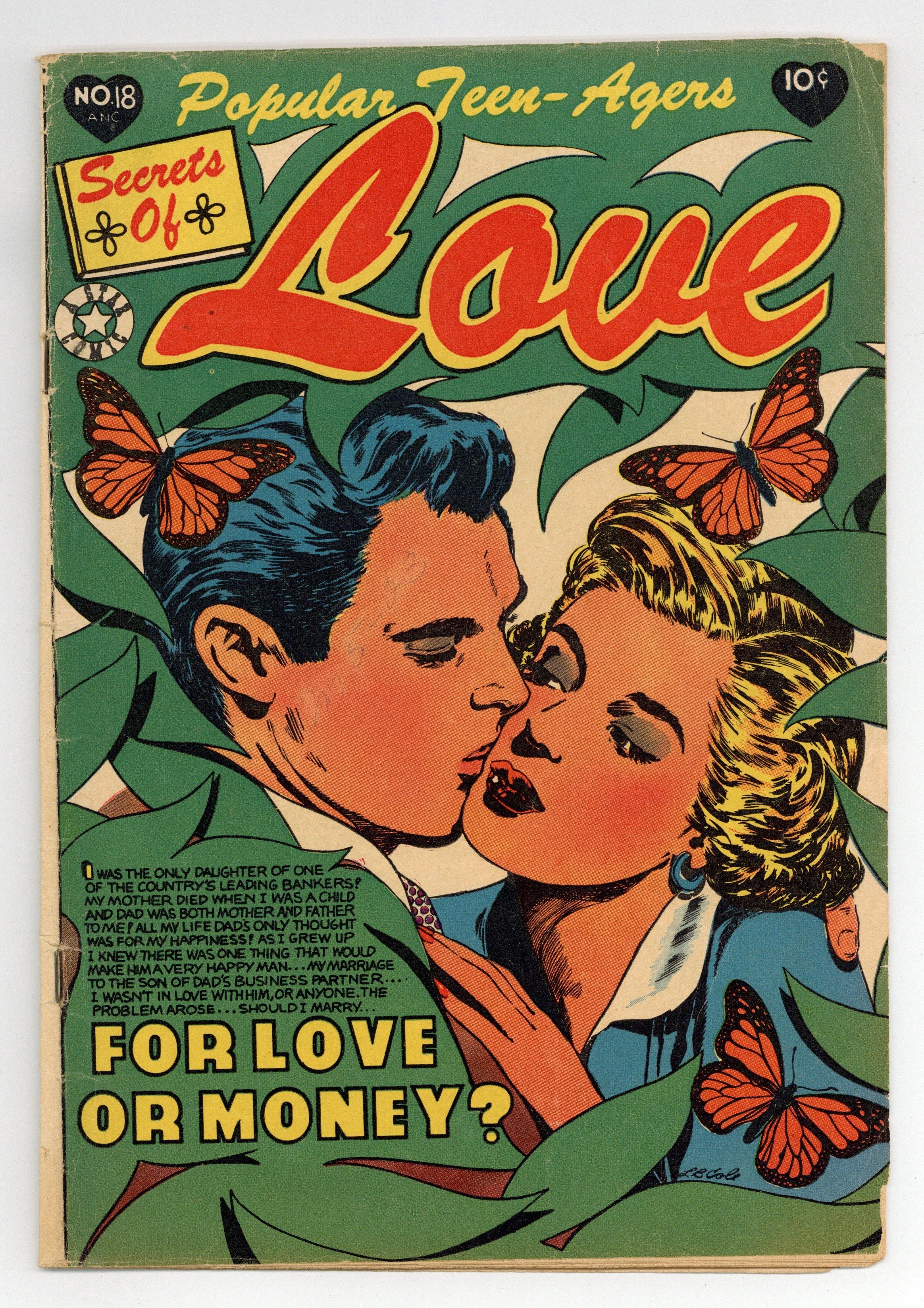 L.B. Cole cover. Contains original and reprinted material as noted. In order of appearance: "For Love or Money"; "Love Customs Around the World"; "We Played at Romance.." retitled and reprinted from "I Hired a Husband" in My Life (1948) #15; and "Love Game". "Love Cues" and "Charm Cues, A Miss and Her Man" text articles retitled and reprinted from "For Heart's Sake" and "To the Girls! A Miss and Her Man" in My Great Love (1949) #4. 36 pages. Full color. Cover price $0.10.