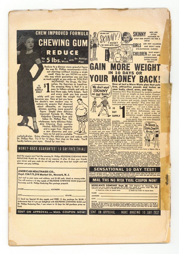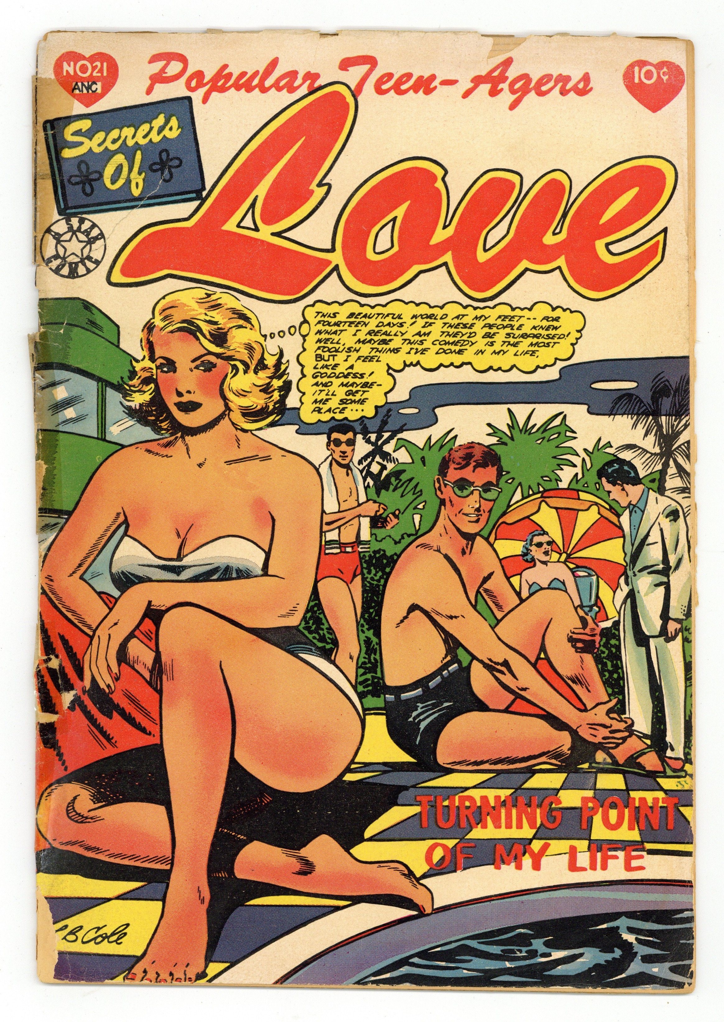 Cover by L. B. Cole. Stories and art by Jay Disbrow and others. Romance comics with teen angst from L.B. Cole's Star Publications. Val loves Jim, but suspects the dark secret in her past will keep them apart, in a story narrated by him (instead of her, like most romance comics of the time). Waitress Mabel invents a new identity for herself while on vacation, but when she falls for handsome radio personality Matthew, she regrets her duplicity. Karen falls for handsome sailor Eric, but his first love is the sea. Also featuring vintage 1950s advice on dating, and another good-girl swimsuit cover by L. B. Cole. My Only Love; How to Get That Second Date; Turning Point of My Life; Reckless Love. 32 pages, Full Color. Cover price $0.10.