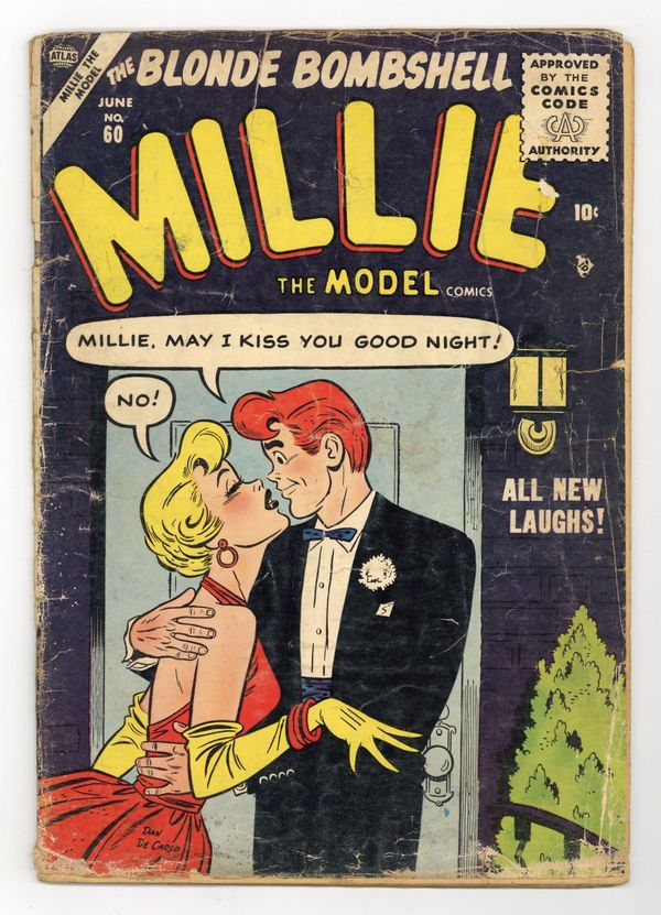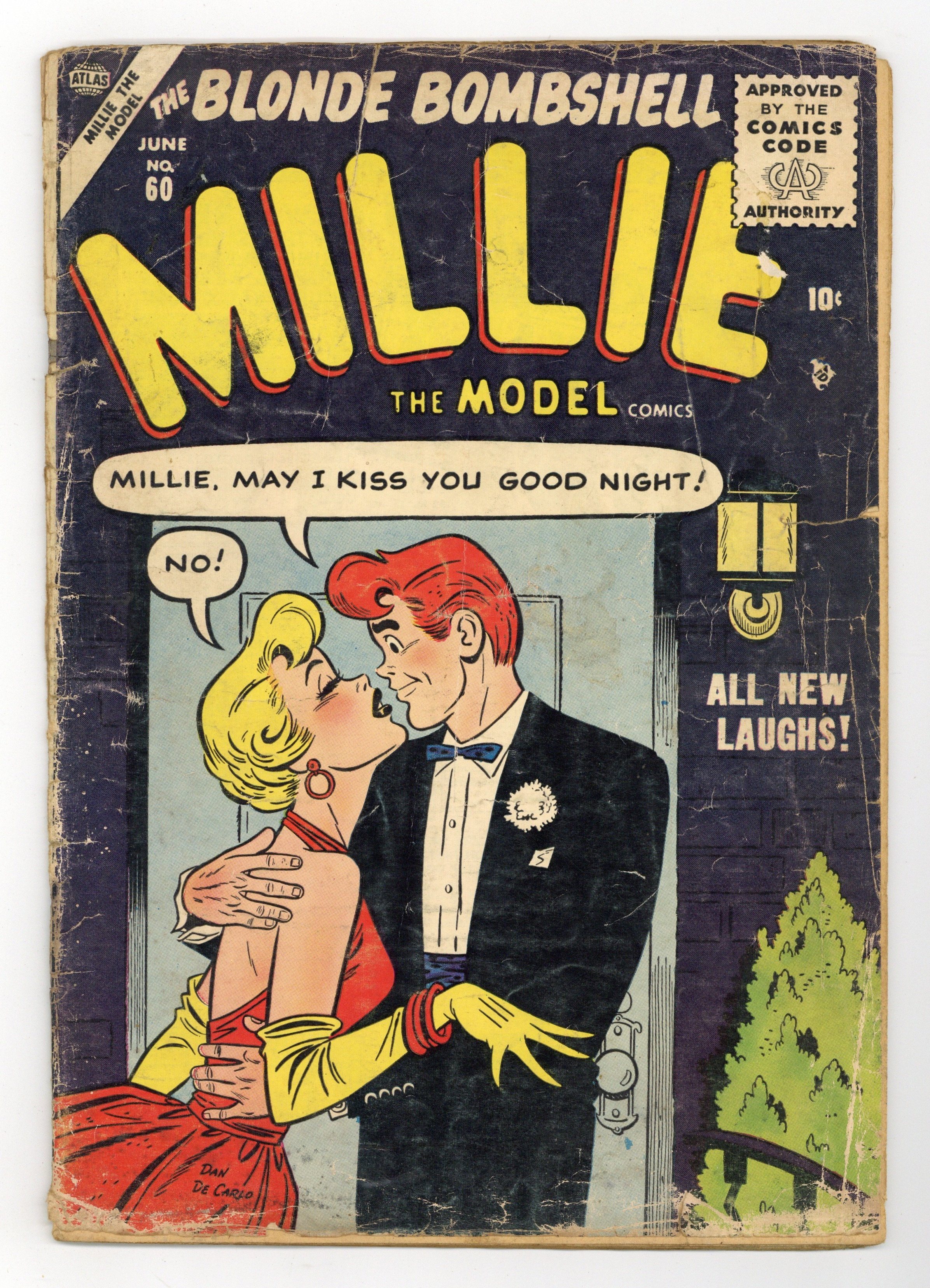 Stories by Stan Lee. Art and Cover by Dan DeCarlo. Millie the Model in: three untitled stories; 4-page "Millie Models..."; and five untitled 1-pagers. Plus: 2-page text story "The Frat Pin" (writer unknown). 32 pages, full color. Cover price $0.10.